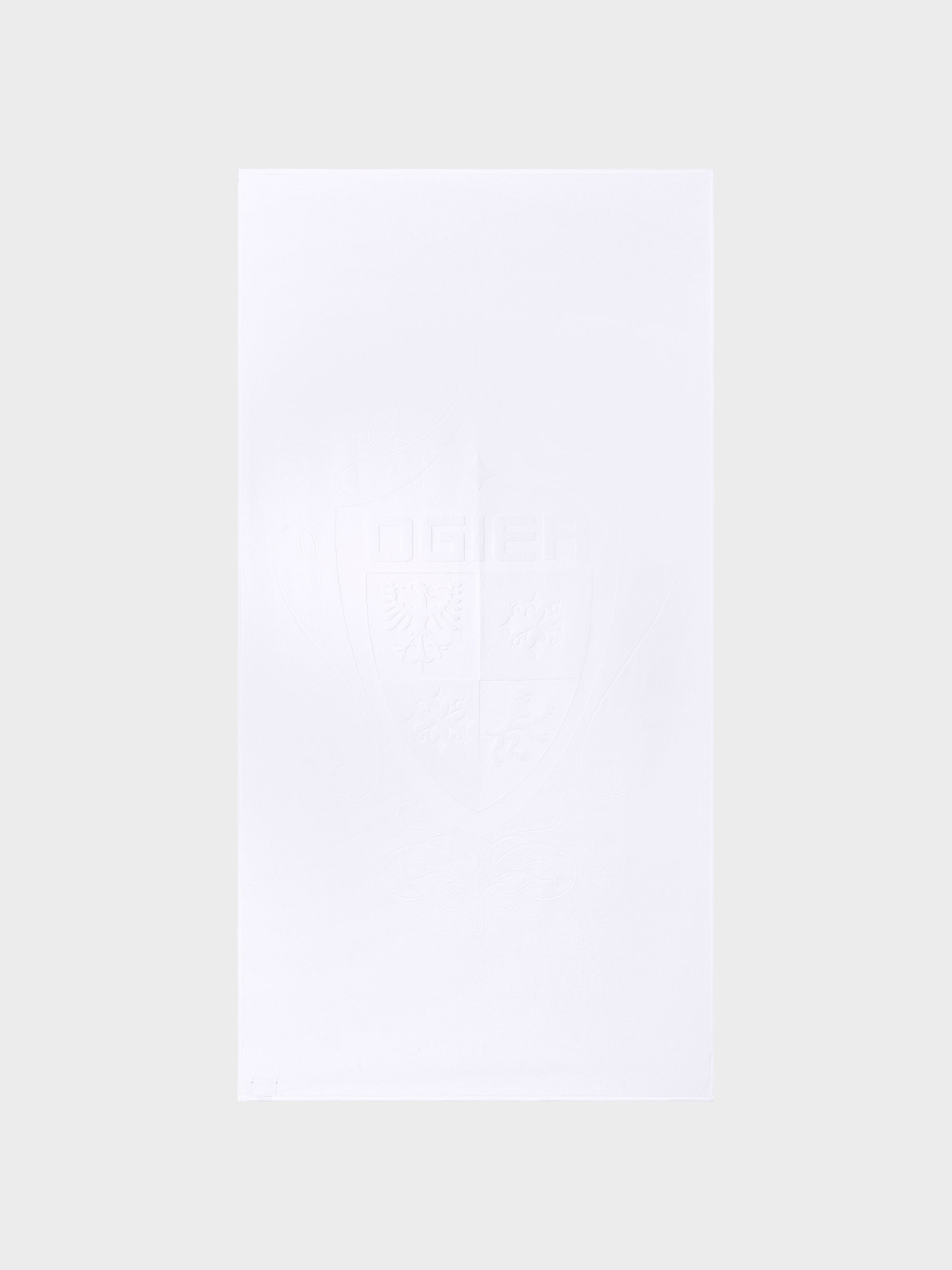 Crafted from pure cotton terry, the Bonifacio beach towel brings together the gentle smoothness of velour and the rich texture of looped terry. A jacquard-woven Ogier crest sits at its center; an understated mark of distinction. Designed to elevate everyday routines into moments of quiet indulgence.