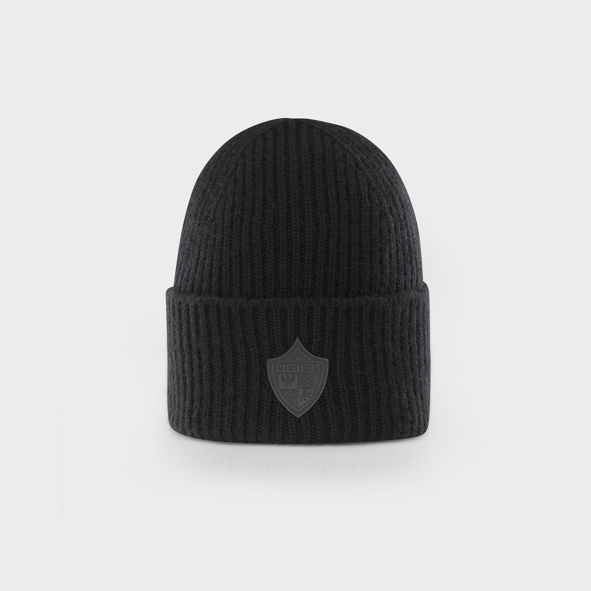 The ribbed knit hat showcases a timeless design, enhanced by an intricately crafted seal emblem from the House of Ogier, adding a touch of distinction. Made from pure cashmere, this luxurious accessory is available in a palette of classic colors, ensuring versatile elegance for any wardrobe.