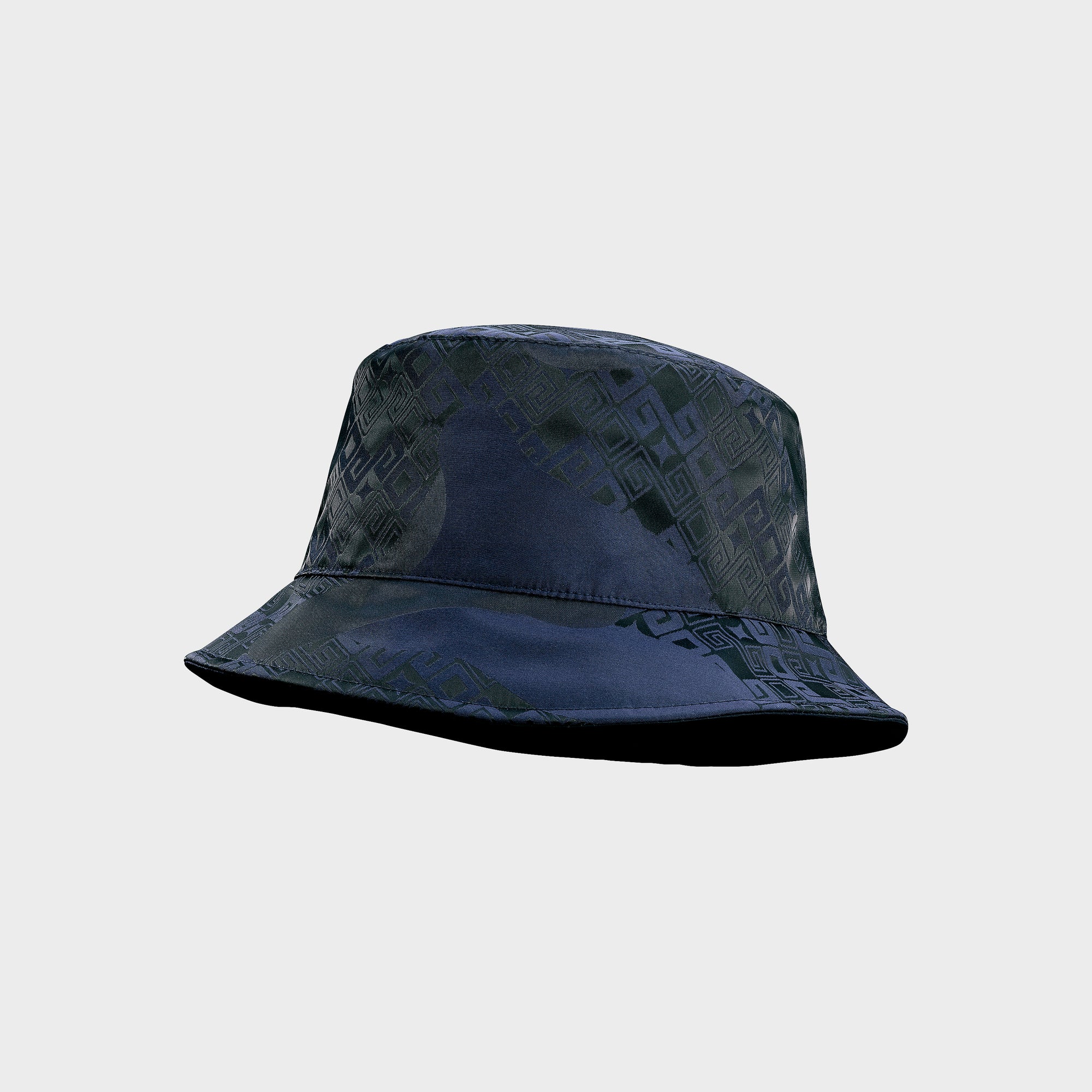 Lightweight and effortlessly stylish, this bucket hat is crafted from luxurious printed nylon, featuring soft tonal shades of navy. The fluid fabric drapes with ease, offering a relaxed structure and refined texture. A subtle nod to the brand’s identity is woven into the print, creating a sophisticated yet understated statement. Perfect for sun-soaked days or adding a polished finish to casual looks.