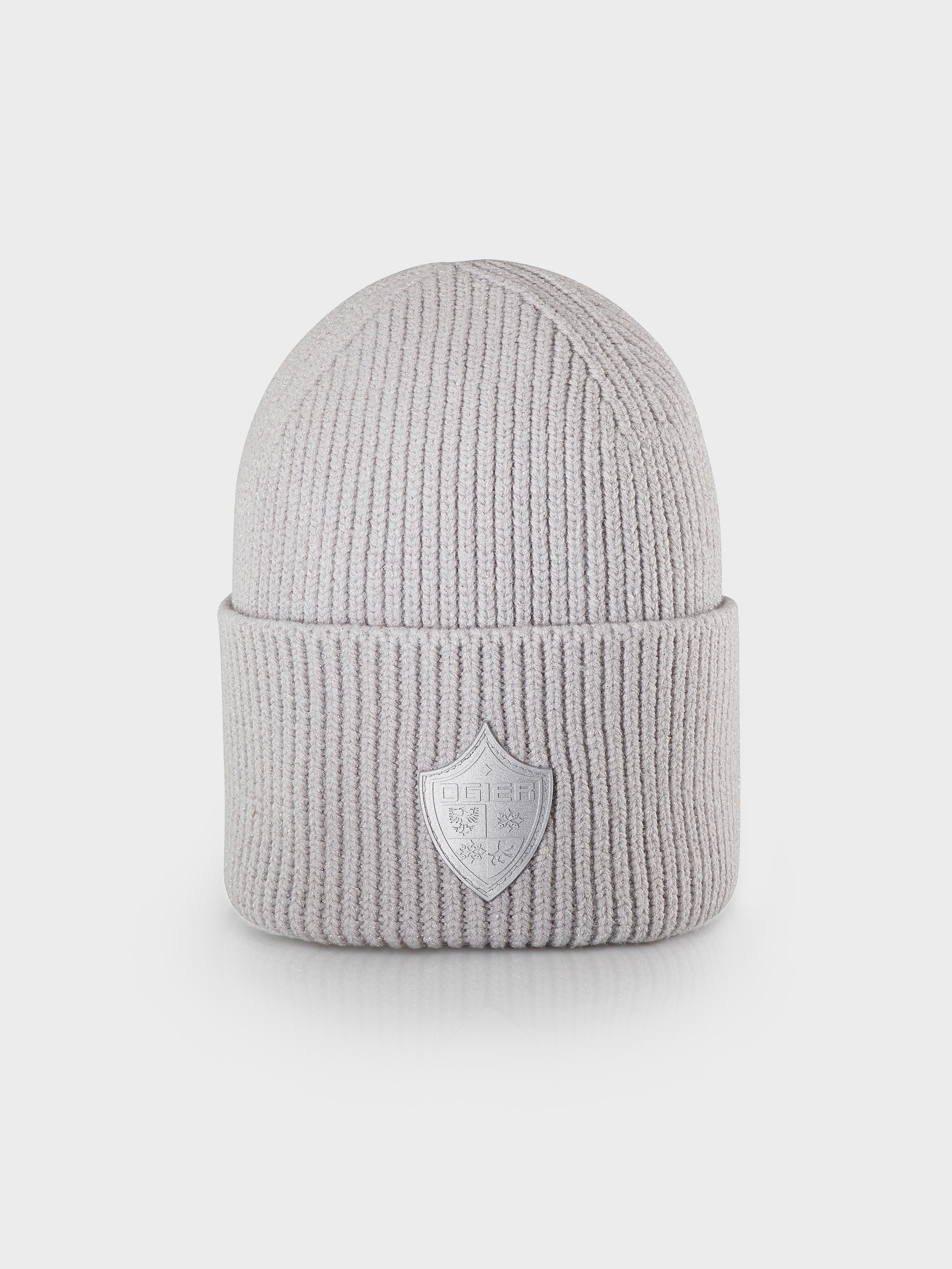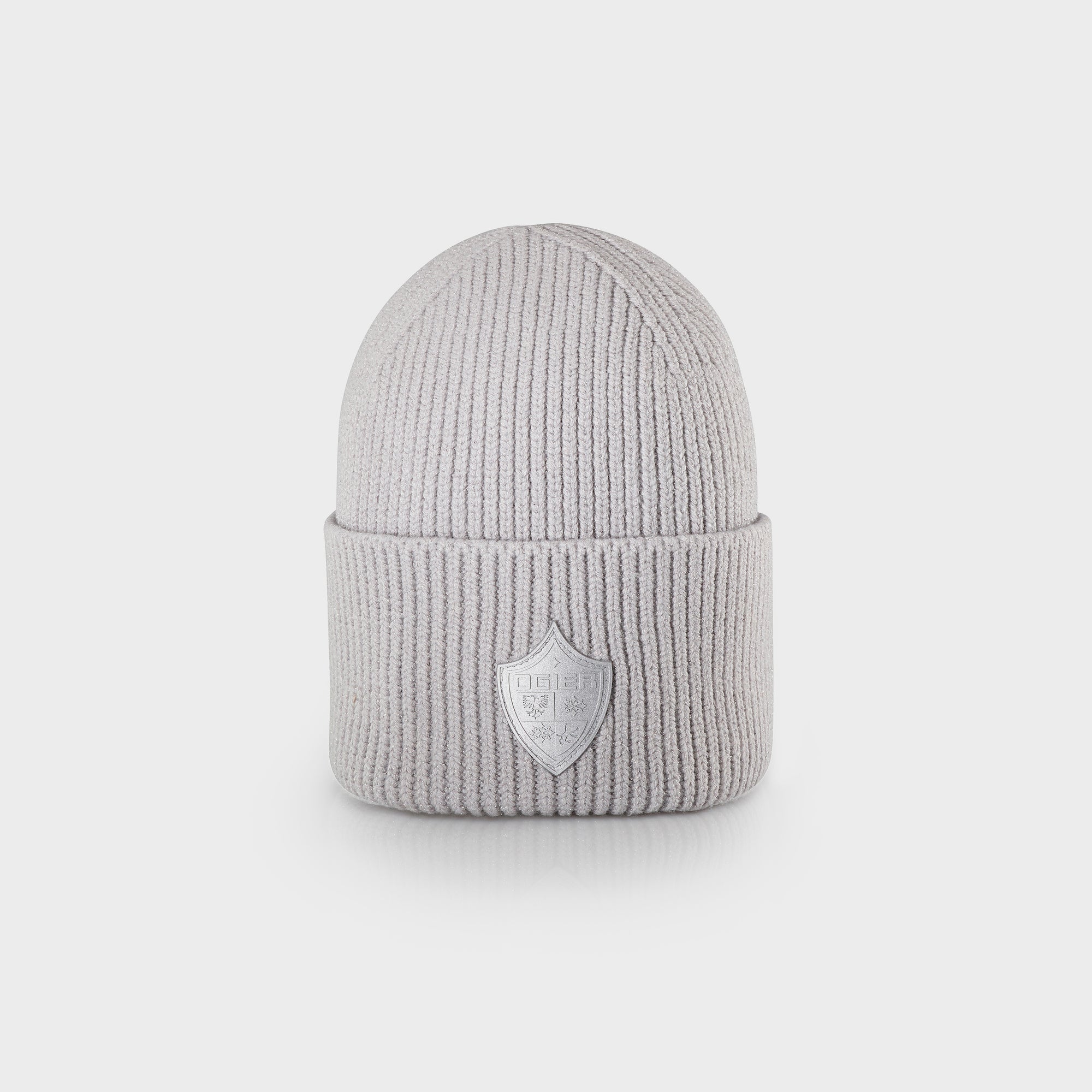 The ribbed knit hat showcases a timeless design, enhanced by an intricately crafted seal emblem from the House of Ogier, adding a touch of distinction. Made from pure cashmere, this luxurious accessory is available in a palette of classic colors, ensuring versatile elegance for any wardrobe.