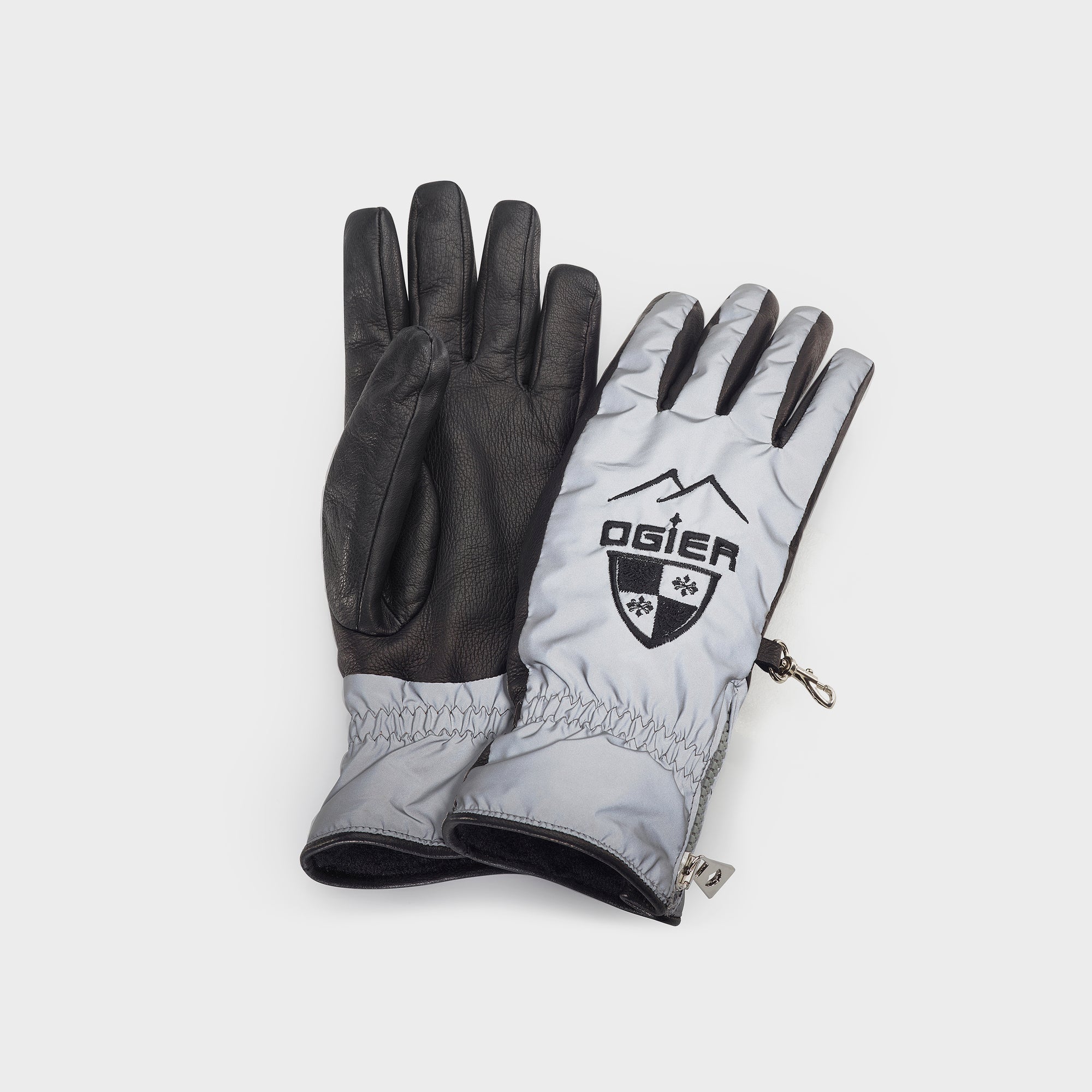 Crafted from waterproof nylon and supple nappa leather, these gloves are lined with soft cashmere for unmatched comfort. Featuring a side zipper and cinched wrists, they offer a secure fit and excellent warmth retention. Weather-resistant and versatile, they are perfect for skiing or city adventures. Styled here with the coordinated ensemble, they add a polished touch to any winter look.