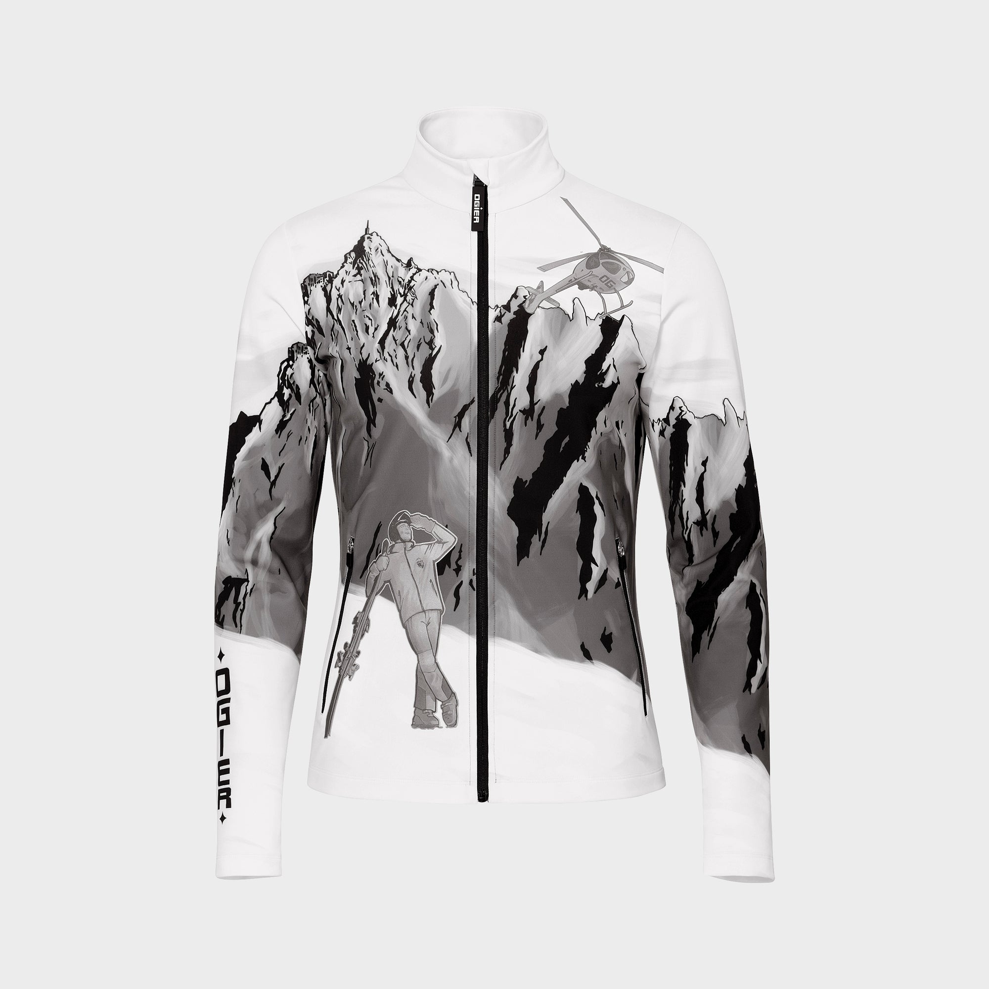 Fleece lined full-zip breathable mock neck base layer featuring a limited production of the aiguille du midi comic print ensures superior warmth and dryness. Coordinates perfectly with the Montreal, Cervinia and Jumanji collection.