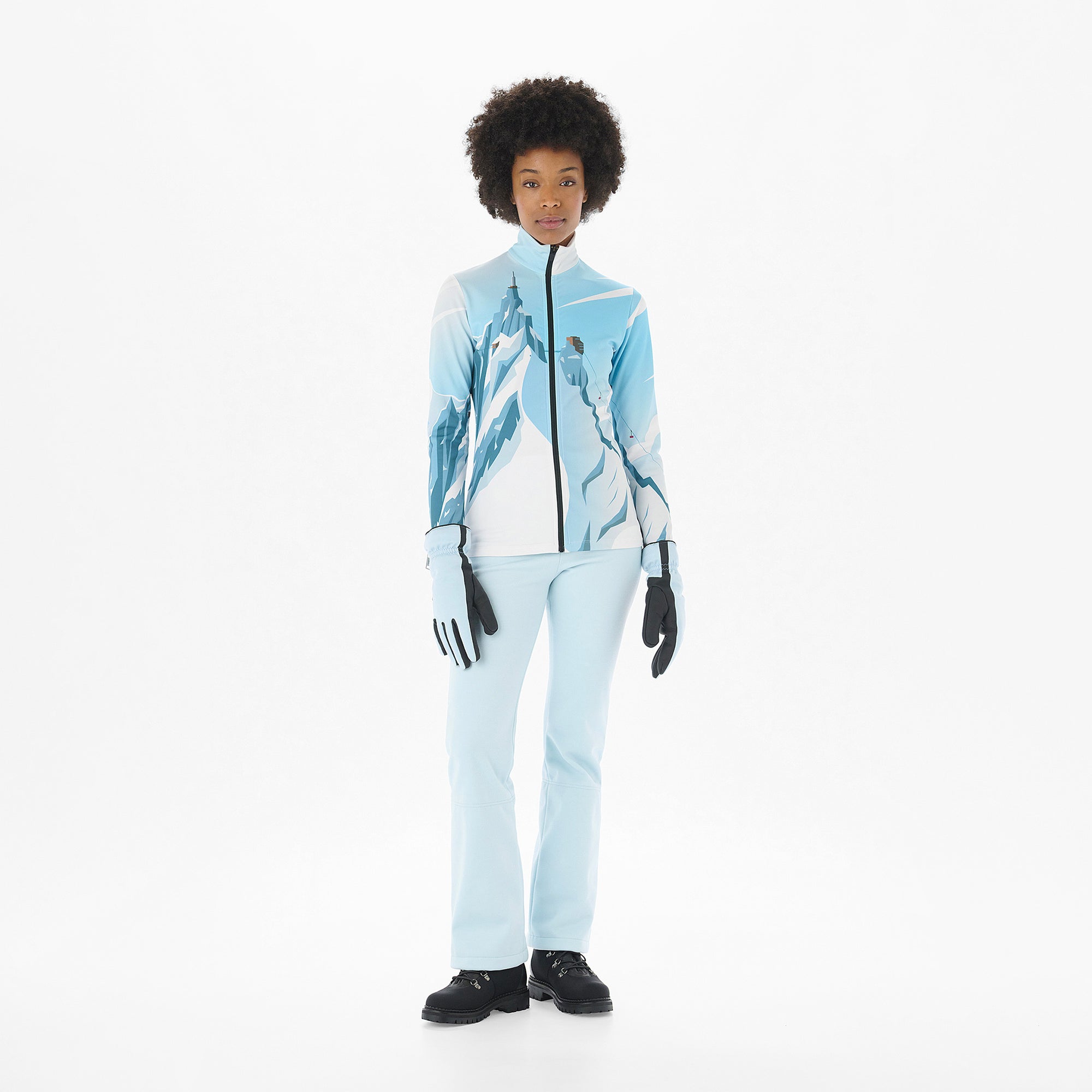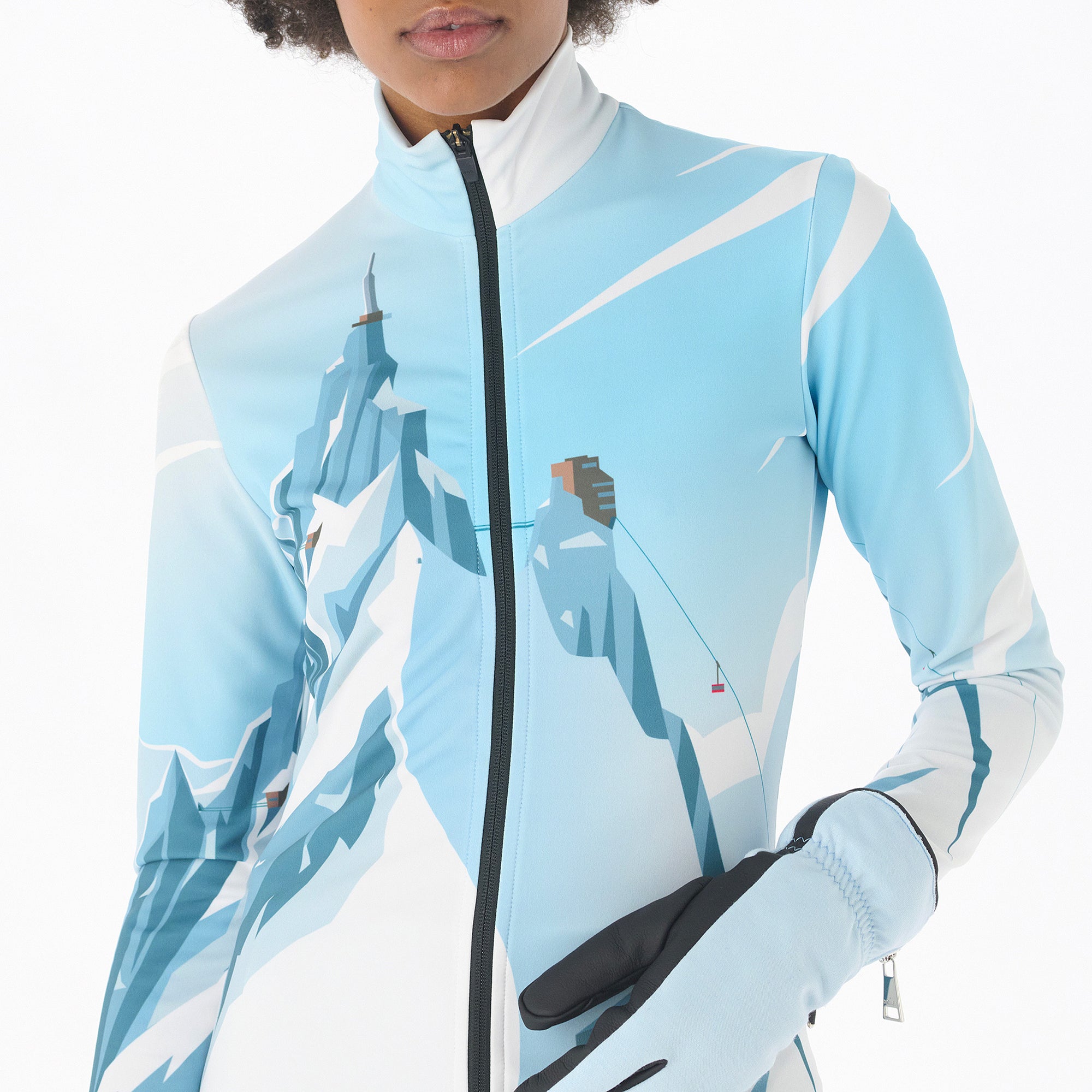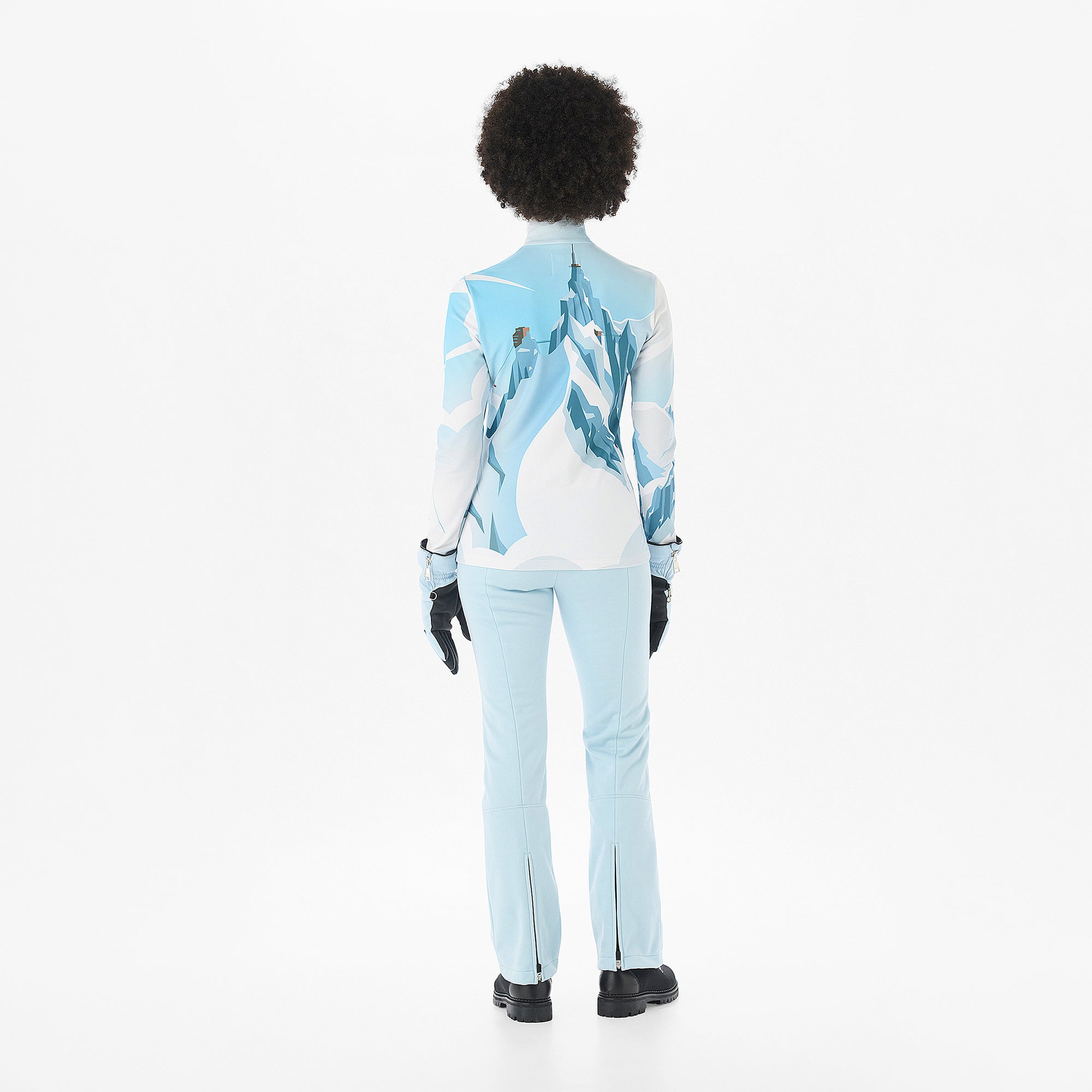 Light-weight, warm, breathable and supremely comfortable, ideal for sport. Can be worn as first layer, under the ski Jacket. Featuring the design collaboration with Charlie Adam - Aiguille du Midi. Made in Italy. Model wears size S.