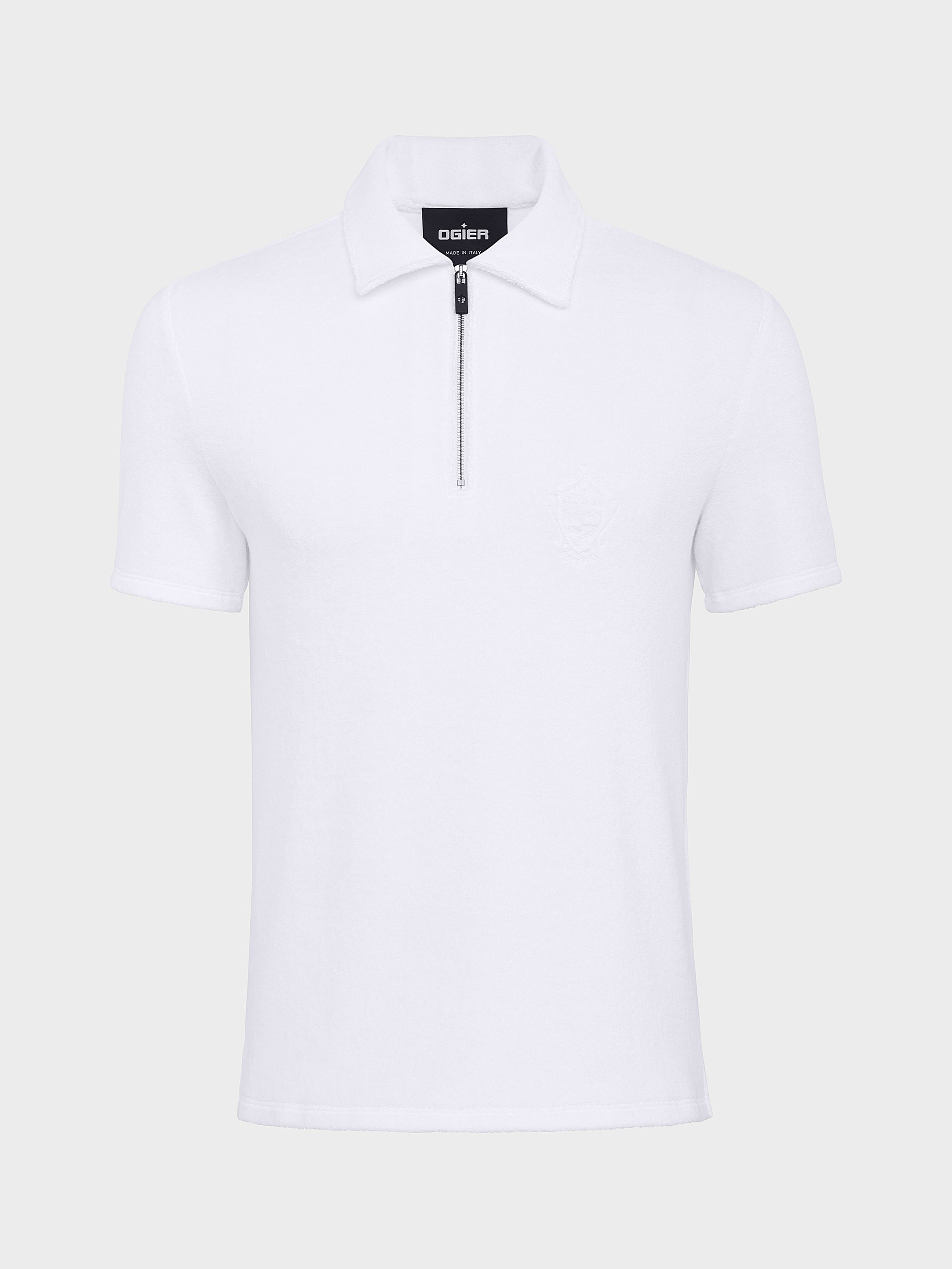 Crafted from light, soft cotton sponge, this polo shirt offers a uniquely soft and airy feel. Designed with a minimalist front zip detail, it blends casual ease with understated sophistication; an elevated essential for effortless dressing.