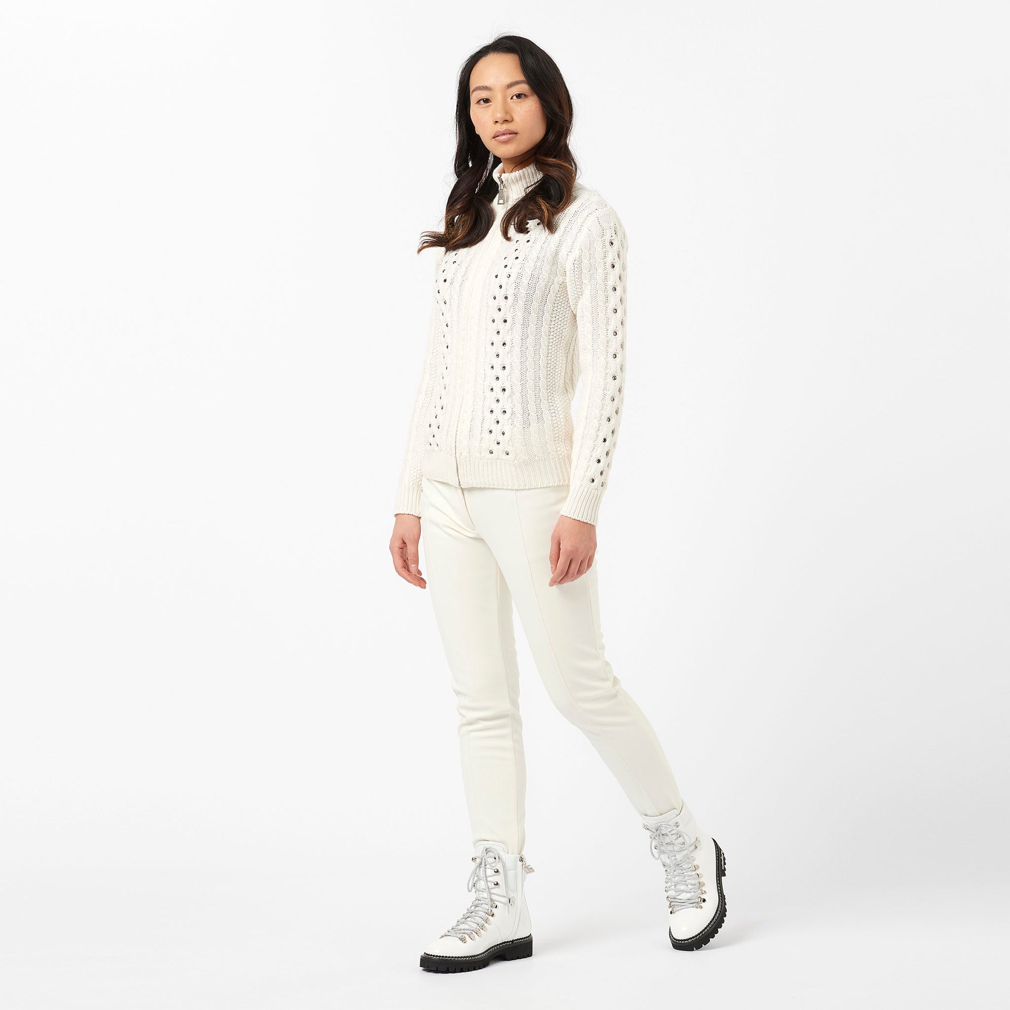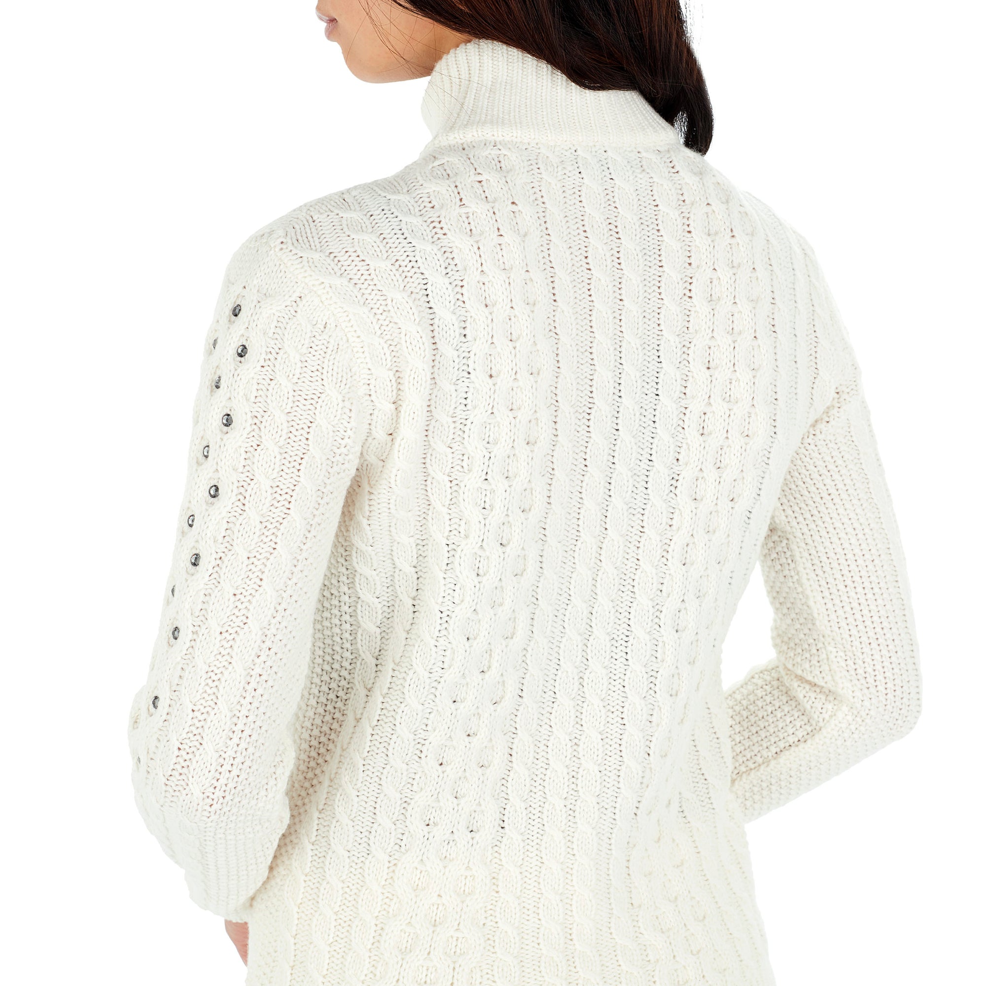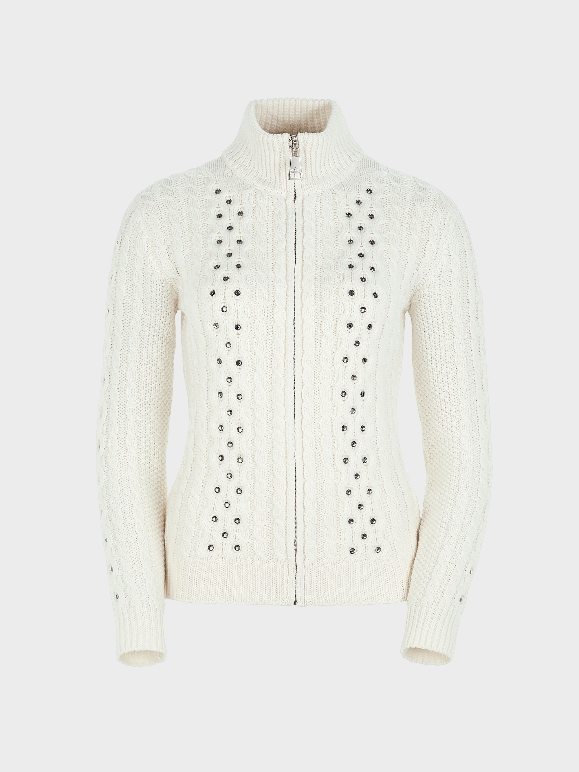 Exclusive baby cashmere high neck sweater. Finishes in darkened hematite swarovski.