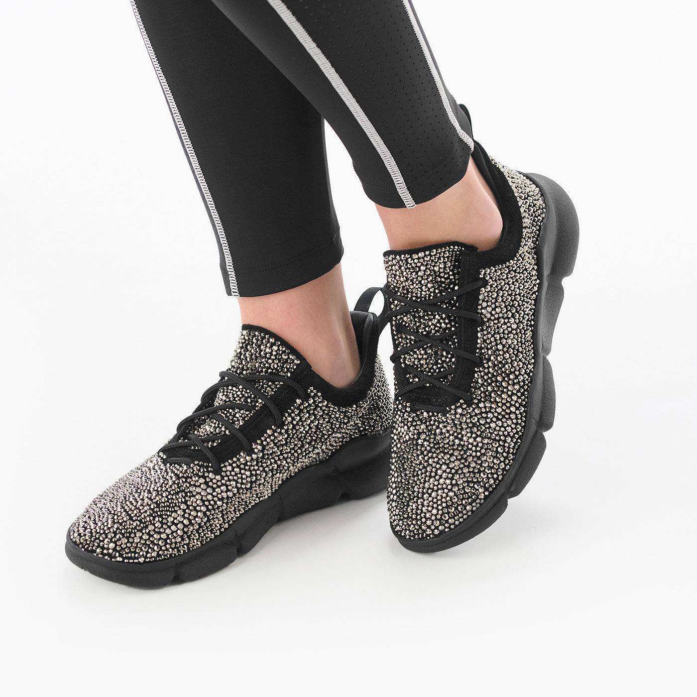 Our compression "Mykonos" sneakers are durable yet chic and feature our superior arch support. Swarovski crystals matching the sport wear collection 2023. Highly breathable thanks to its composition. Made in Italy.