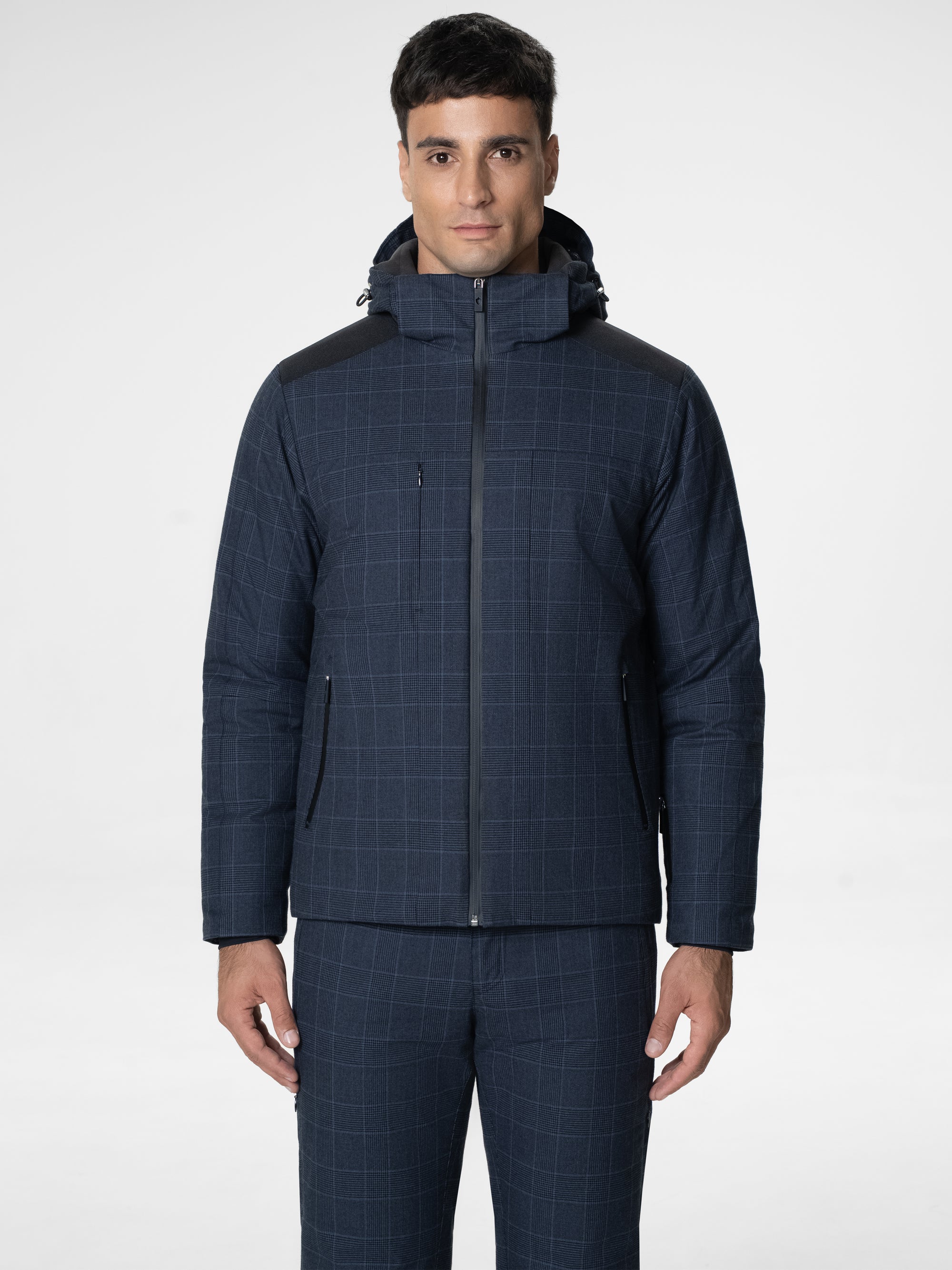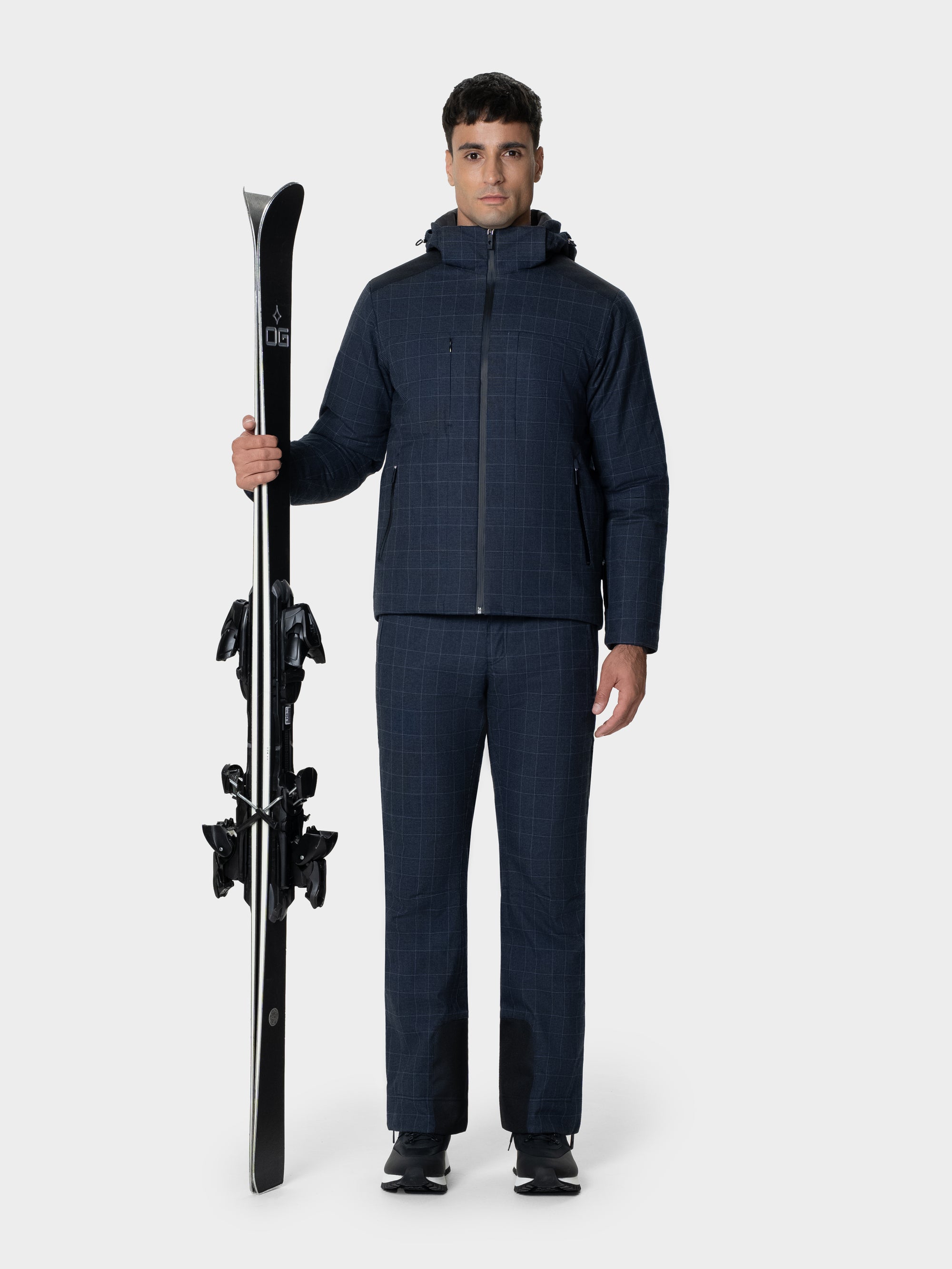 Crafted from a silk–wool blend with this season’s signature square pattern, the Zelari jacket embodies warmth, elegance, and precision. Its technical membrane ensures full waterproof protection while preserving a naturally soft hand and fluid drape. Detailed with refined tailoring and discreet finishes, it pairs perfectly with the Avari Ski Pant from the same collection.