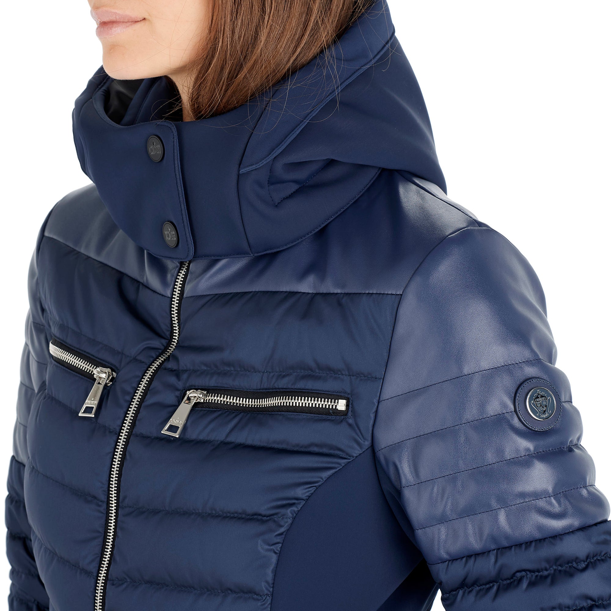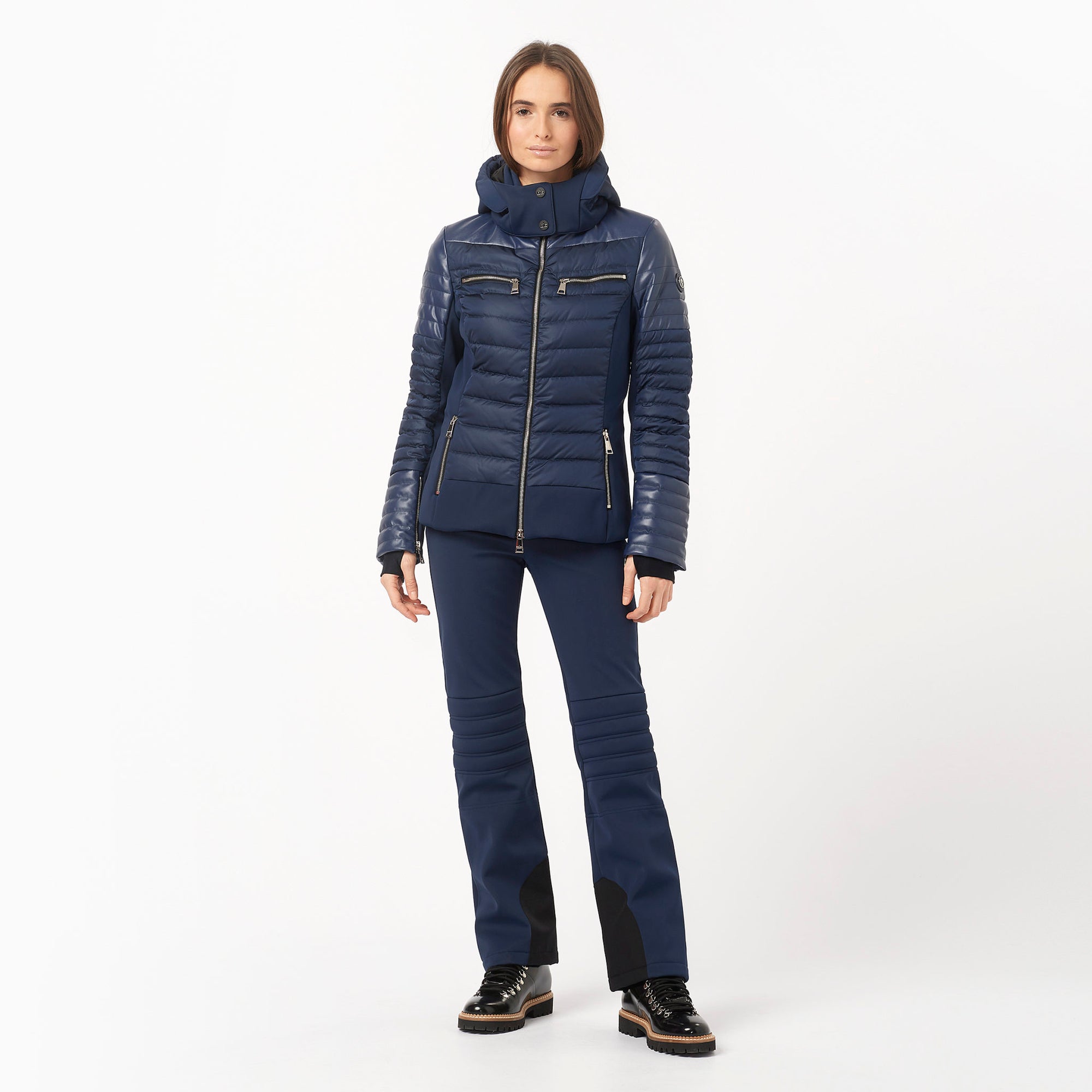 Fitted yet functional outwear for skiing but equally suitable for city wear. Comfort provided by elasticity of the Ogier stretch shell fabric.