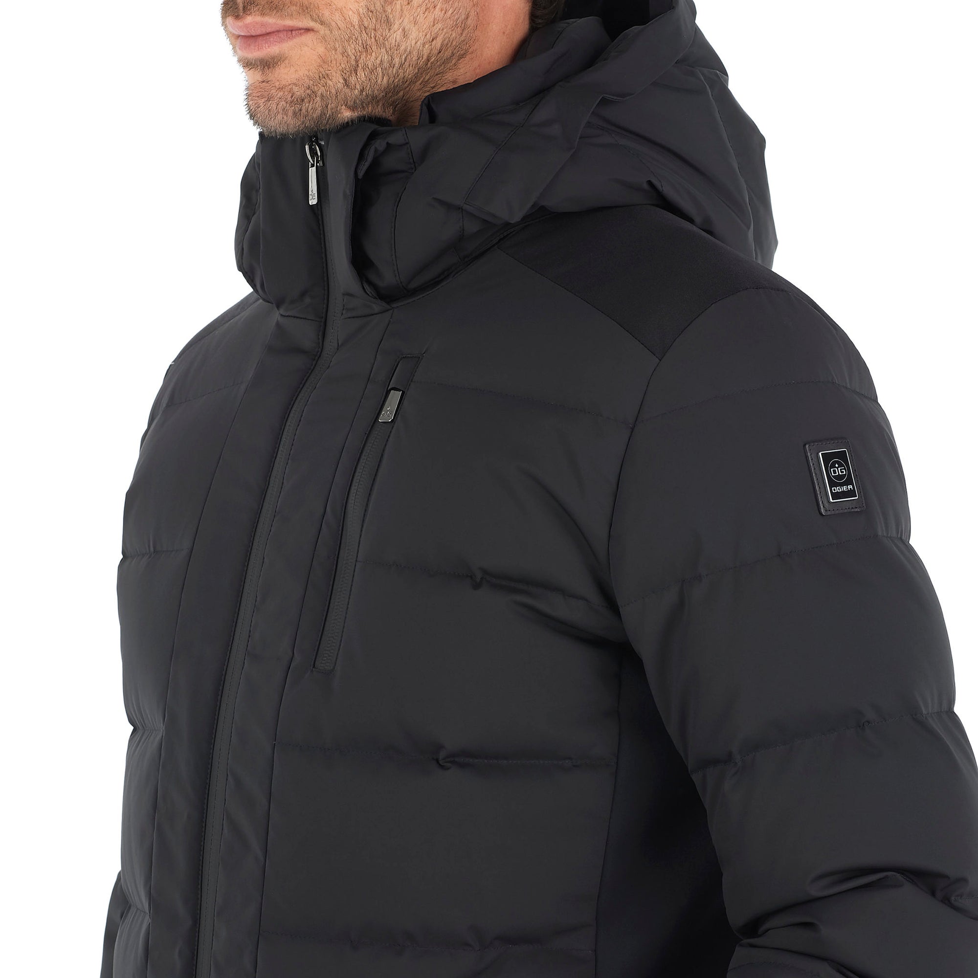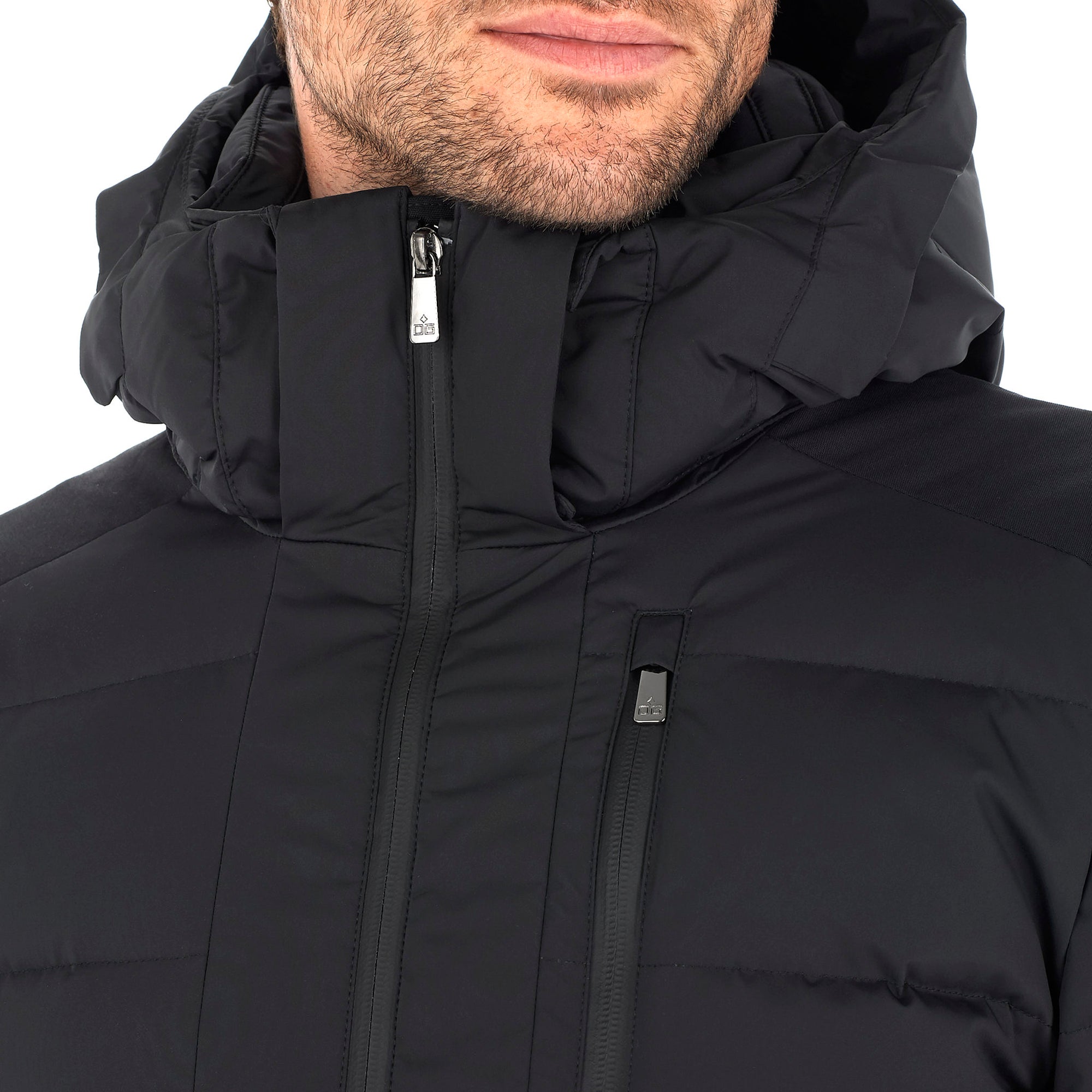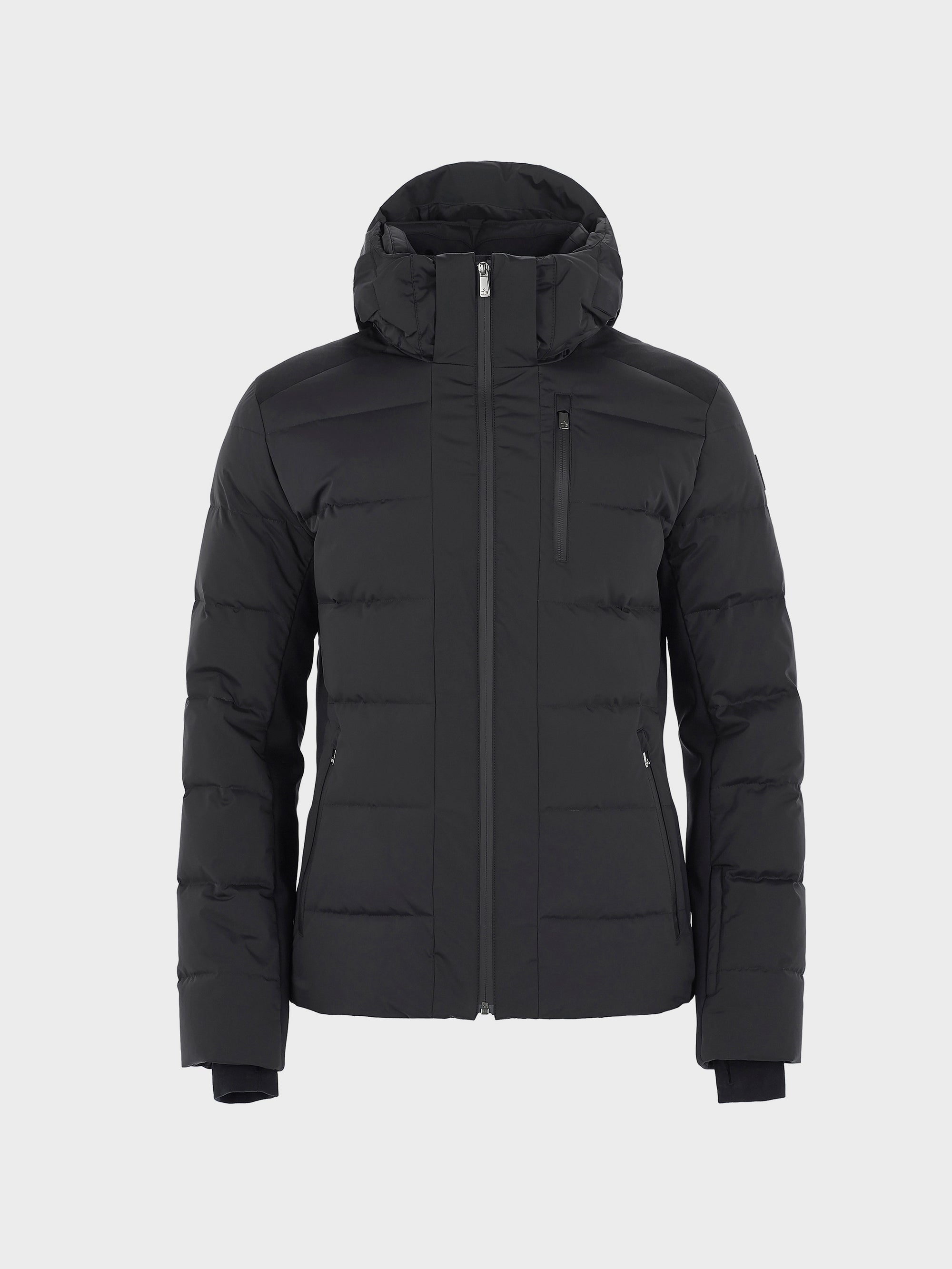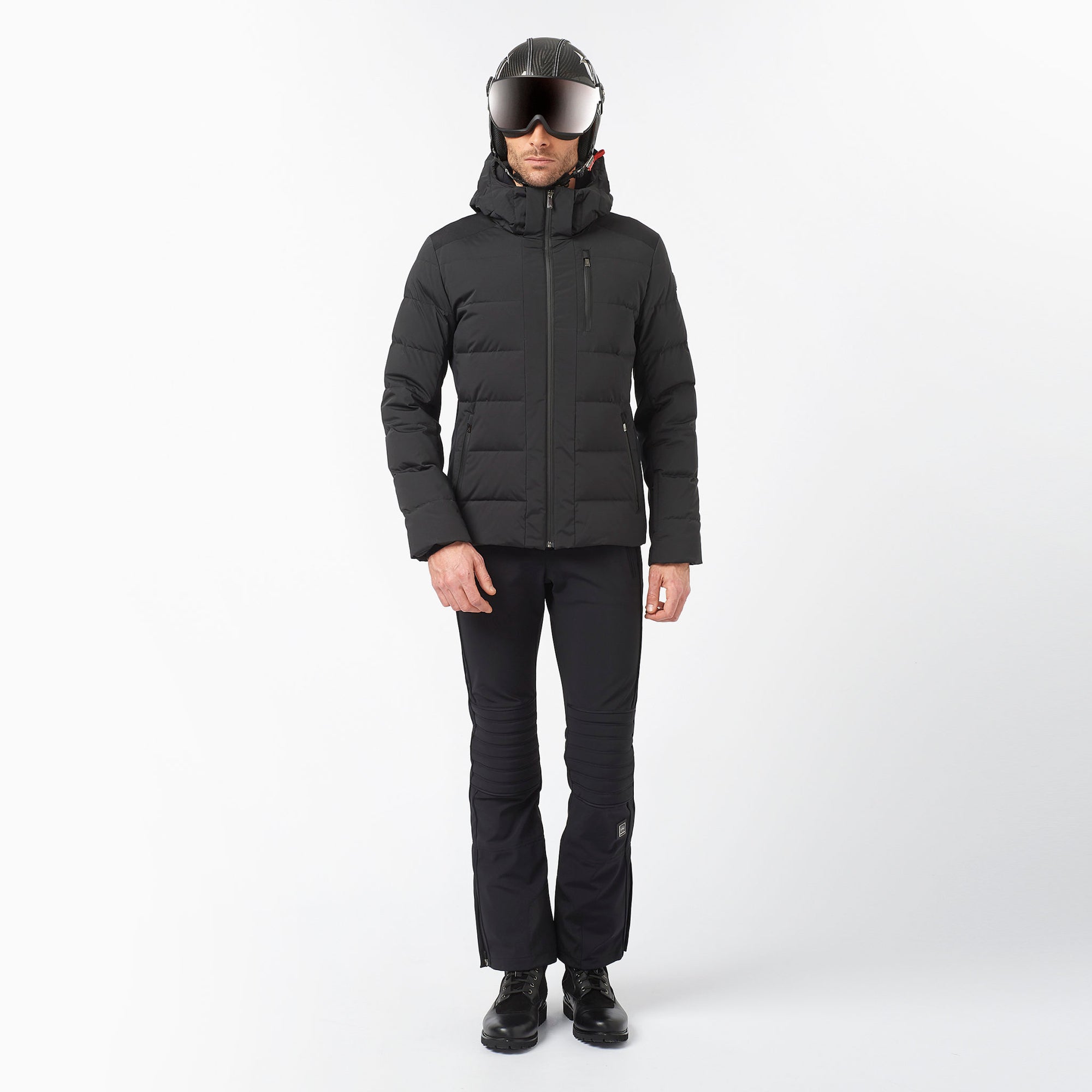 Fitted down jacket suitable for ski and city. Silky fabric treated for a waterproof, wind-resistant finish.