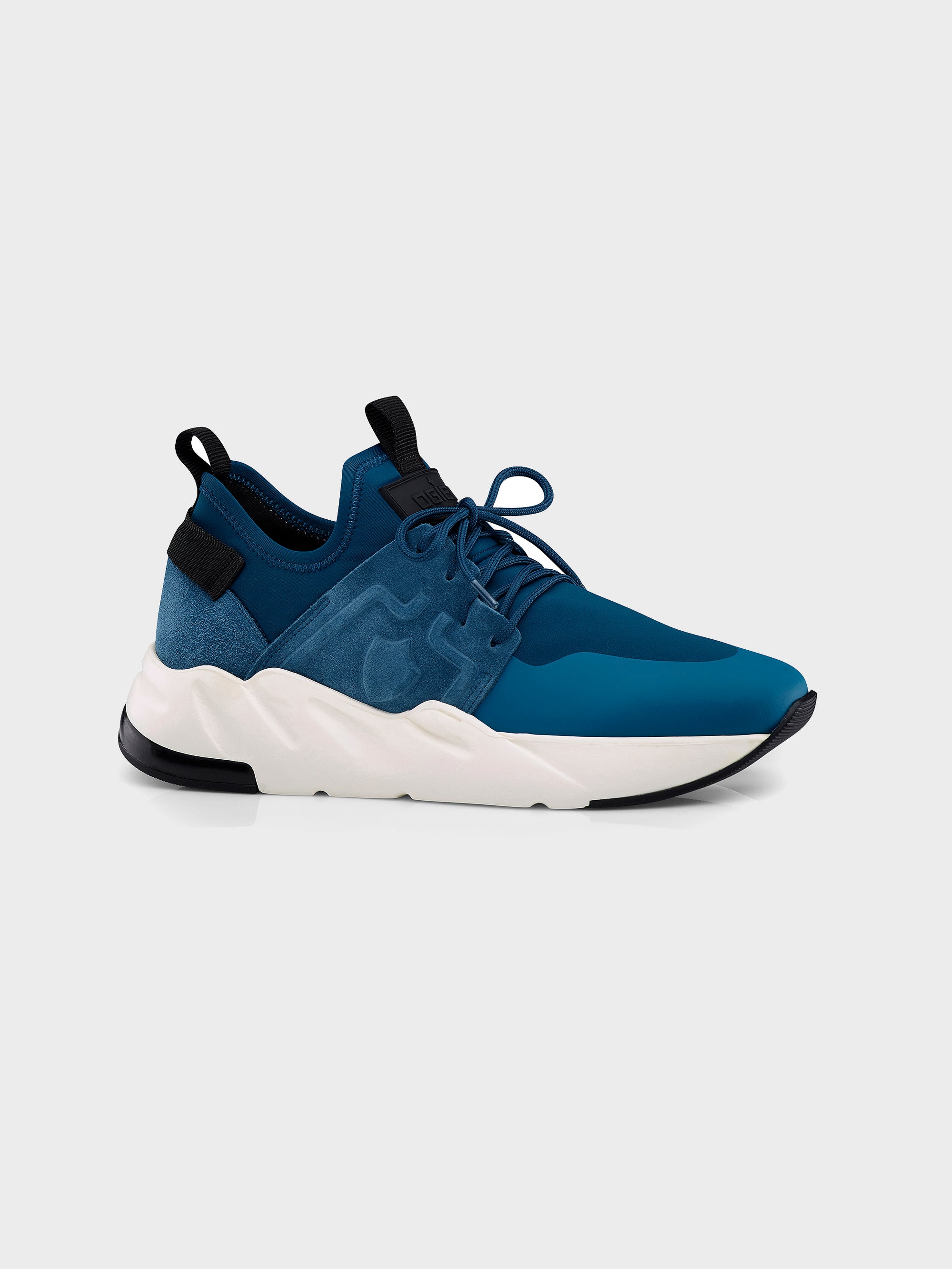 These sporty sneakers feature signature colors that echo the season’s collection. The sculpted outsole pays tribute to snow-covered mountain landscapes, a nod to the brand’s alpine heritage. Crafted from a stretch multi-fabric construction, they offer a flexible, supportive fit—combining function, comfort, and statement-making design in every step.