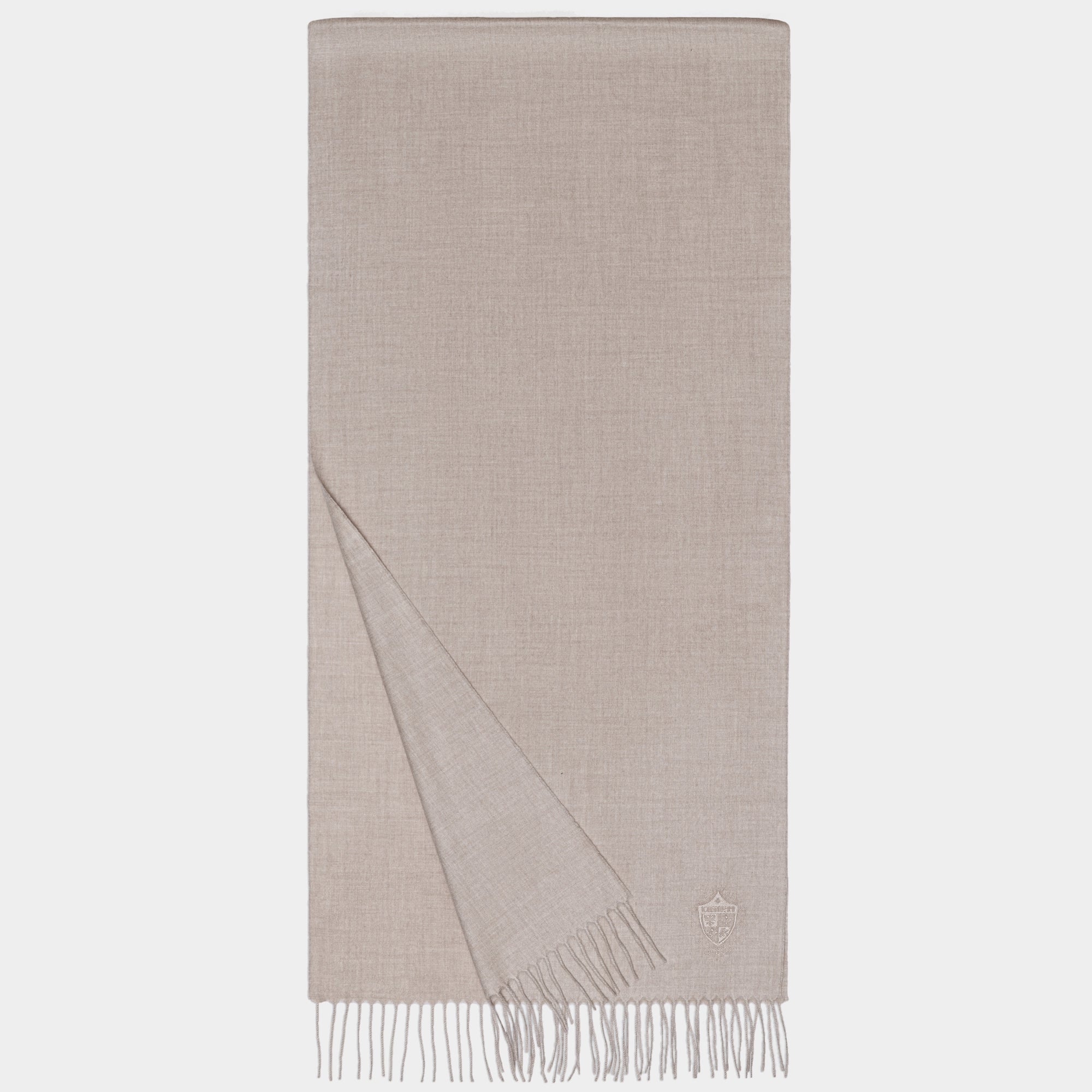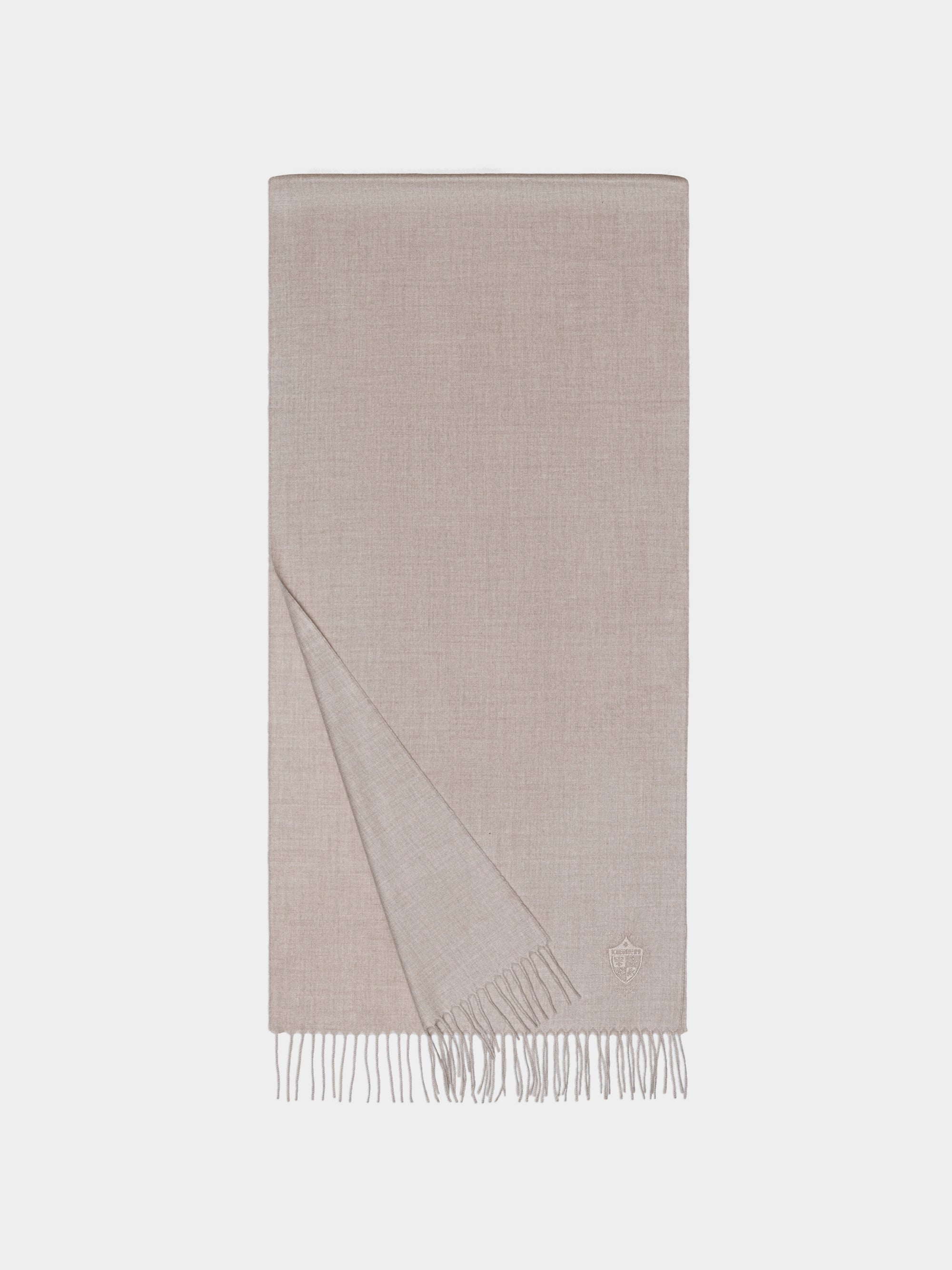 Zibellino cashmere scarf finished with Ogier's exclusive “Frisson” treatment: the cashmere is gently tightened and smoothed, creating a slight natural sheen while preserving softness and fluidity. The result is a fabric that appears more luminous and refined, with colours that look deeper and more vibrant, without any artificial coating or stiffness.