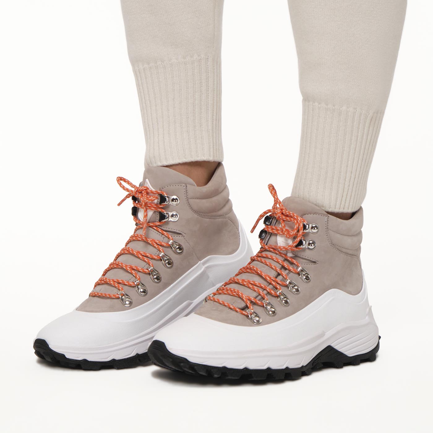 Chaussures après-ski idéales, confectionnées en tissu technique suédé imperméable et en cuir de veau français de qualité supérieure. Protectrices, confortables et légères, elles offrent une sensation optimale de maintien, de fluidité et d'adhérence en terrain alpin. Leur semelle ultra-résistante et confortable reproduit l'aspect et la sensation d'être pieds nus.