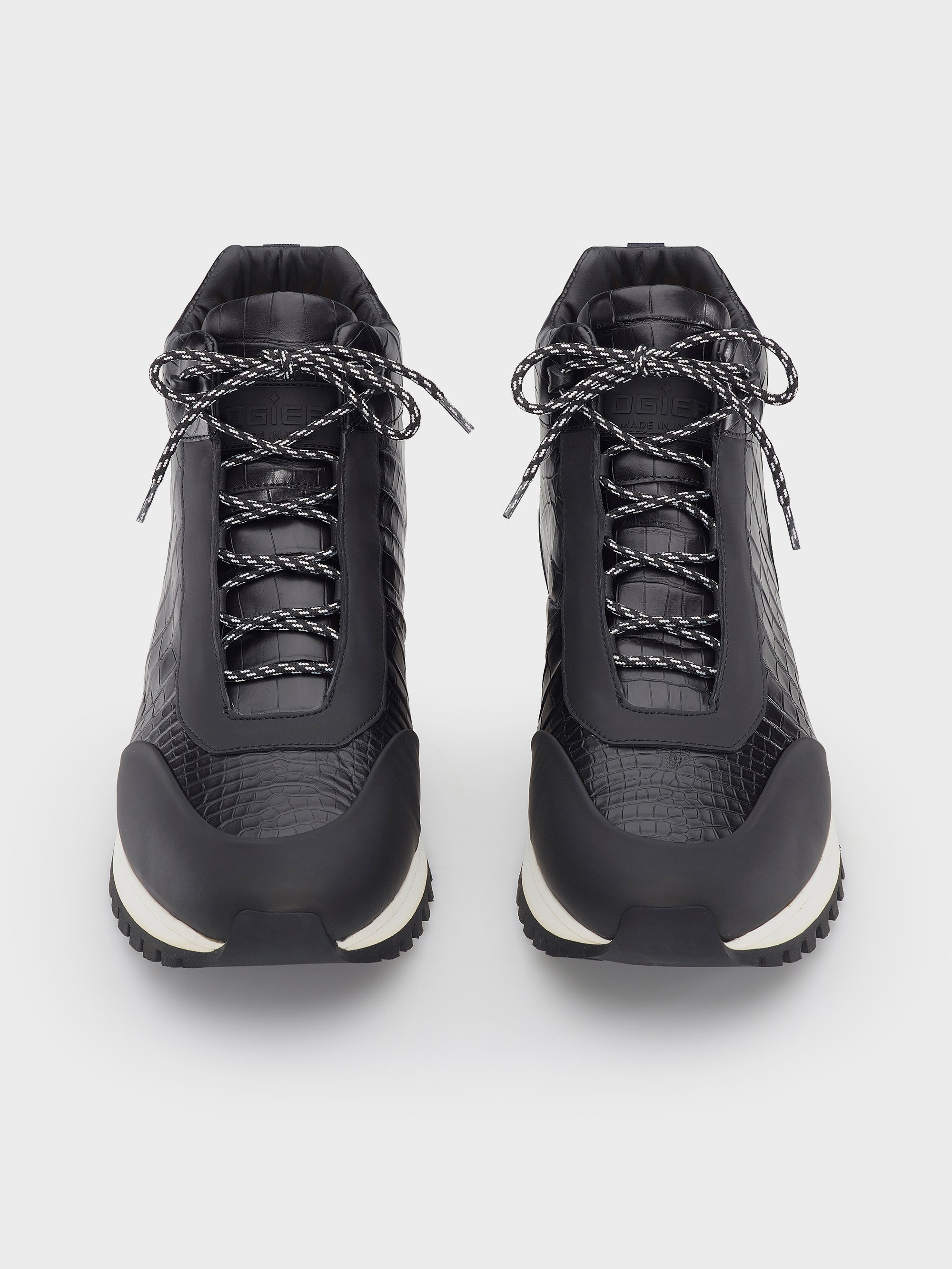 Chaussures après-ski légères par excellence, ces bottes sont confectionnées en cuir d'alligator et en cuir de veau finition caoutchouc imperméable, alliant luxe et performances avancées. Conçues pour la protection et le confort, elles sont à la fois légères et résistantes, offrant un maintien, une flexibilité et une adhérence exceptionnels en terrain alpin. Conçues pour résister aux conditions difficiles, elles offrent une fonctionnalité inégalée et un style raffiné pour vos aventures après les pistes.