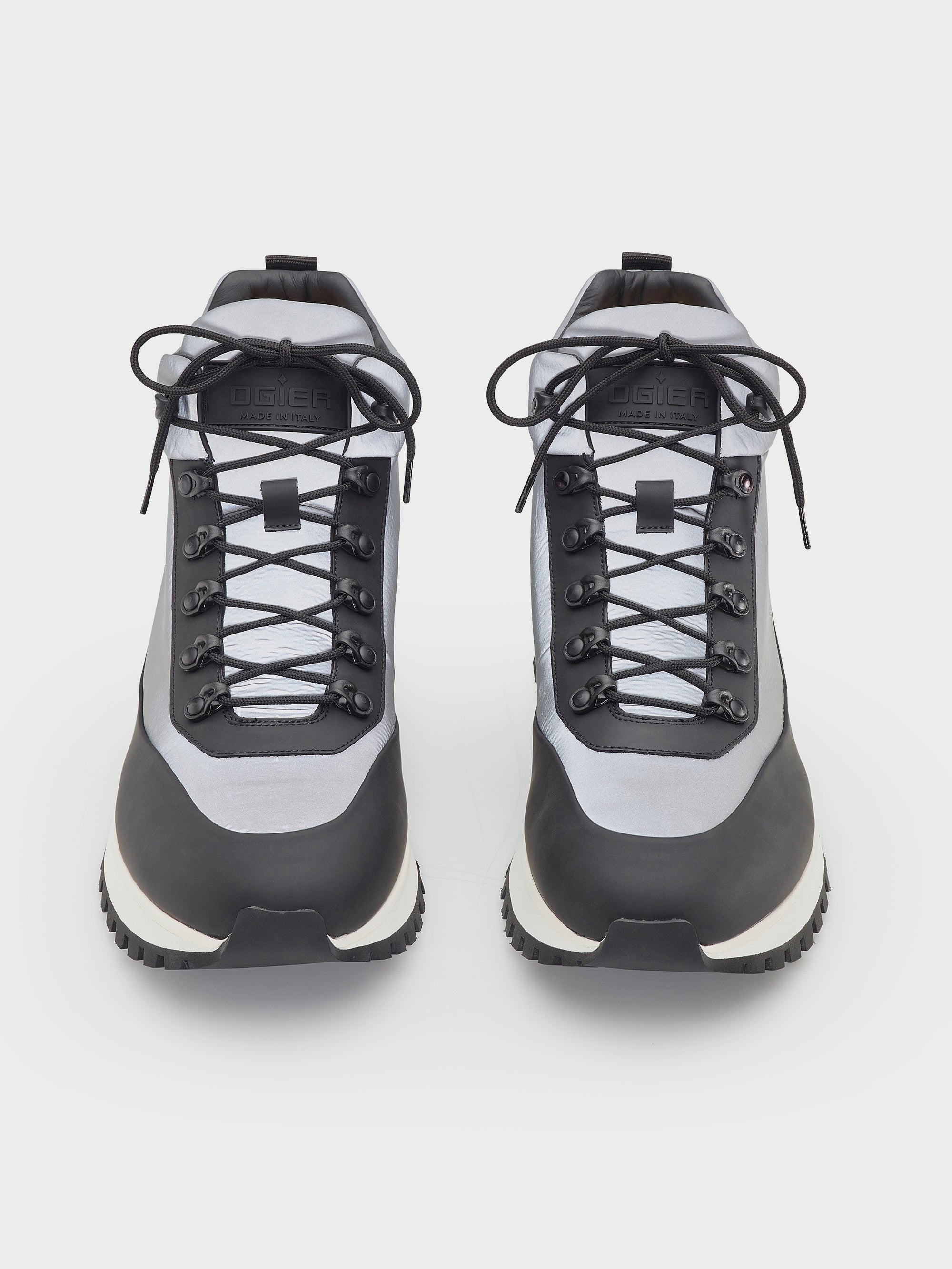 Chaussures légères idéales pour l'après-ski, ces bottes sont confectionnées en cuir de veau français et en nylon réfléchissant. Conçues pour la protection et le confort, elles sont légères et résistantes, offrant un maintien, une flexibilité et une adhérence exceptionnels en terrain alpin. Conçues pour résister aux conditions difficiles, elles offrent des performances et un style inégalés pour vos aventures après les pistes.