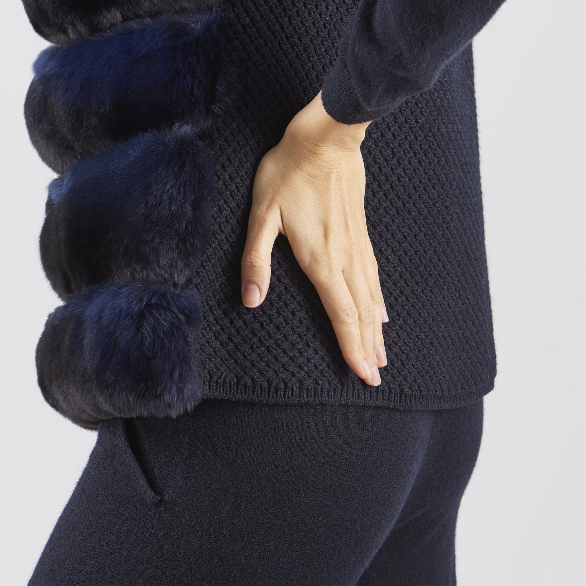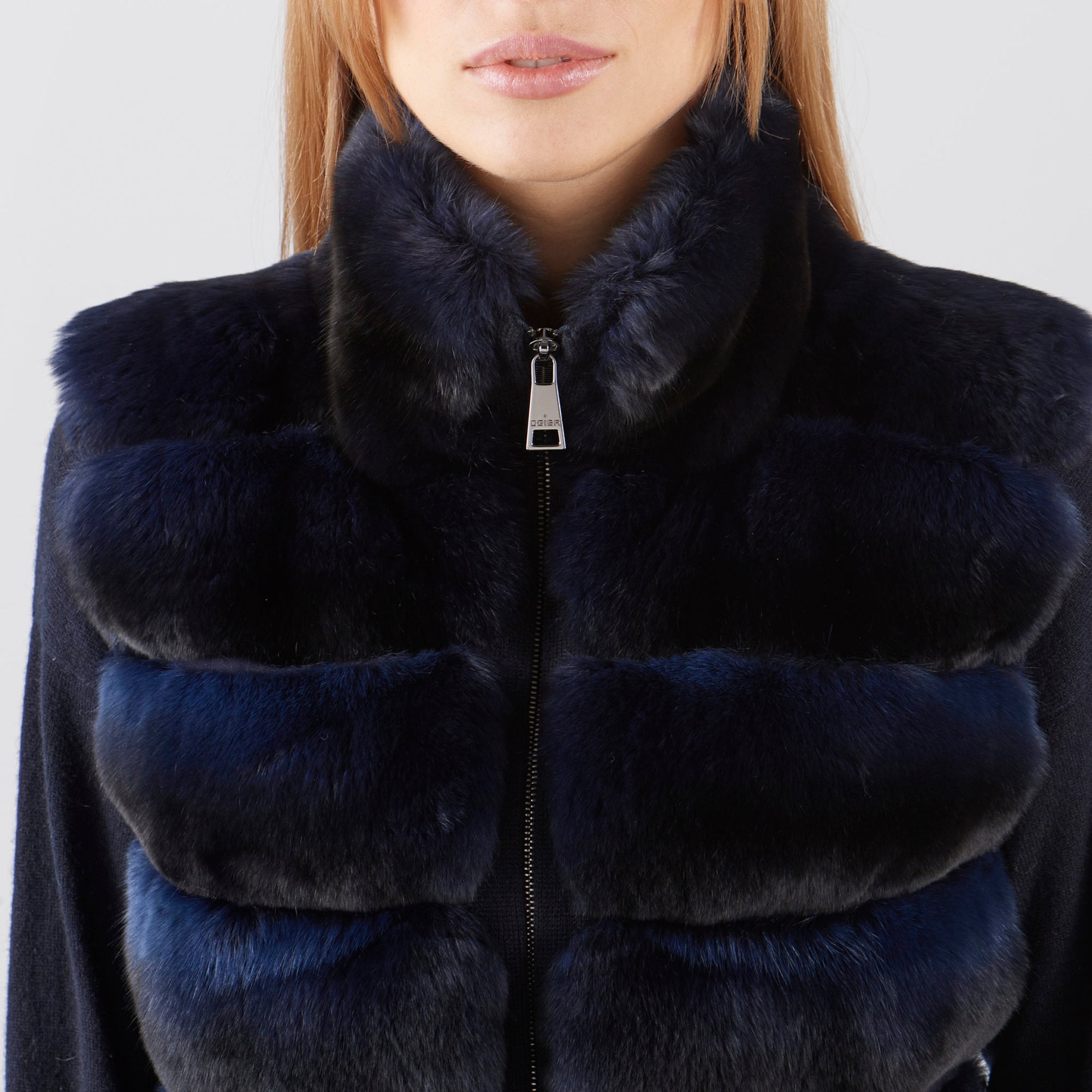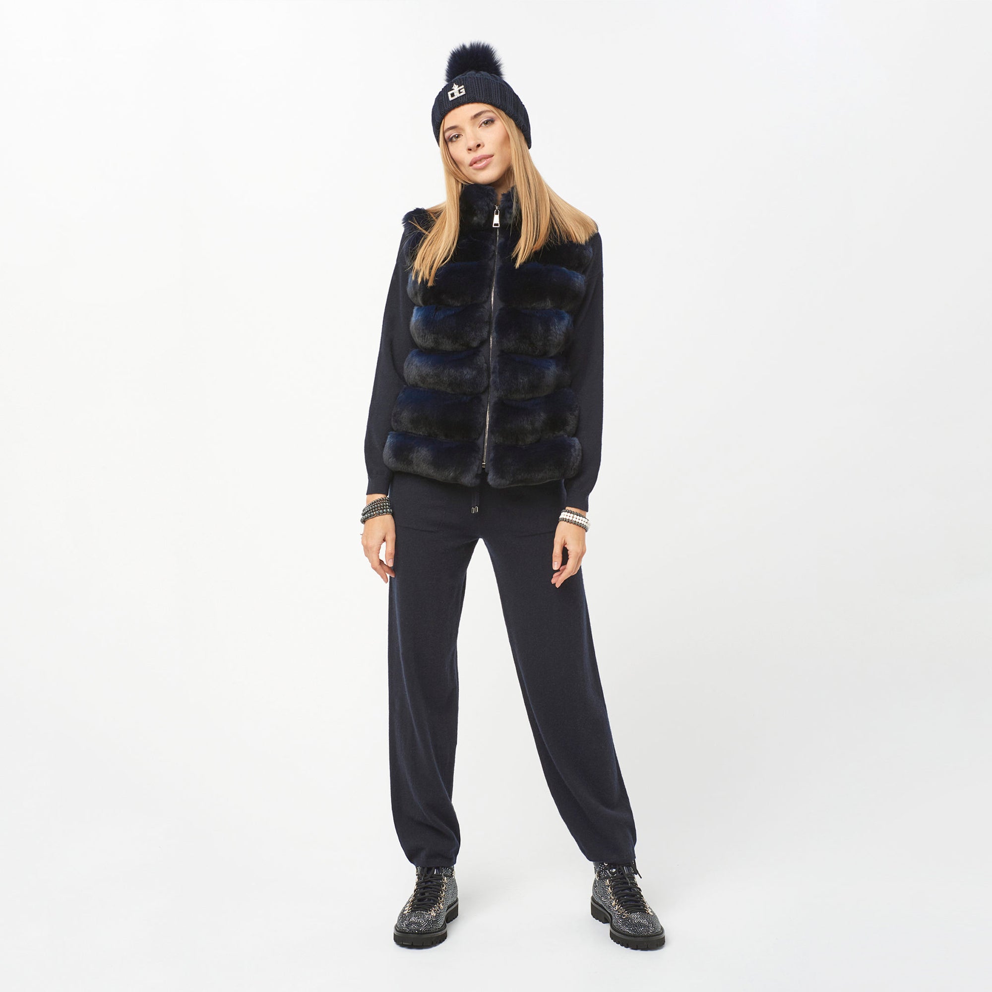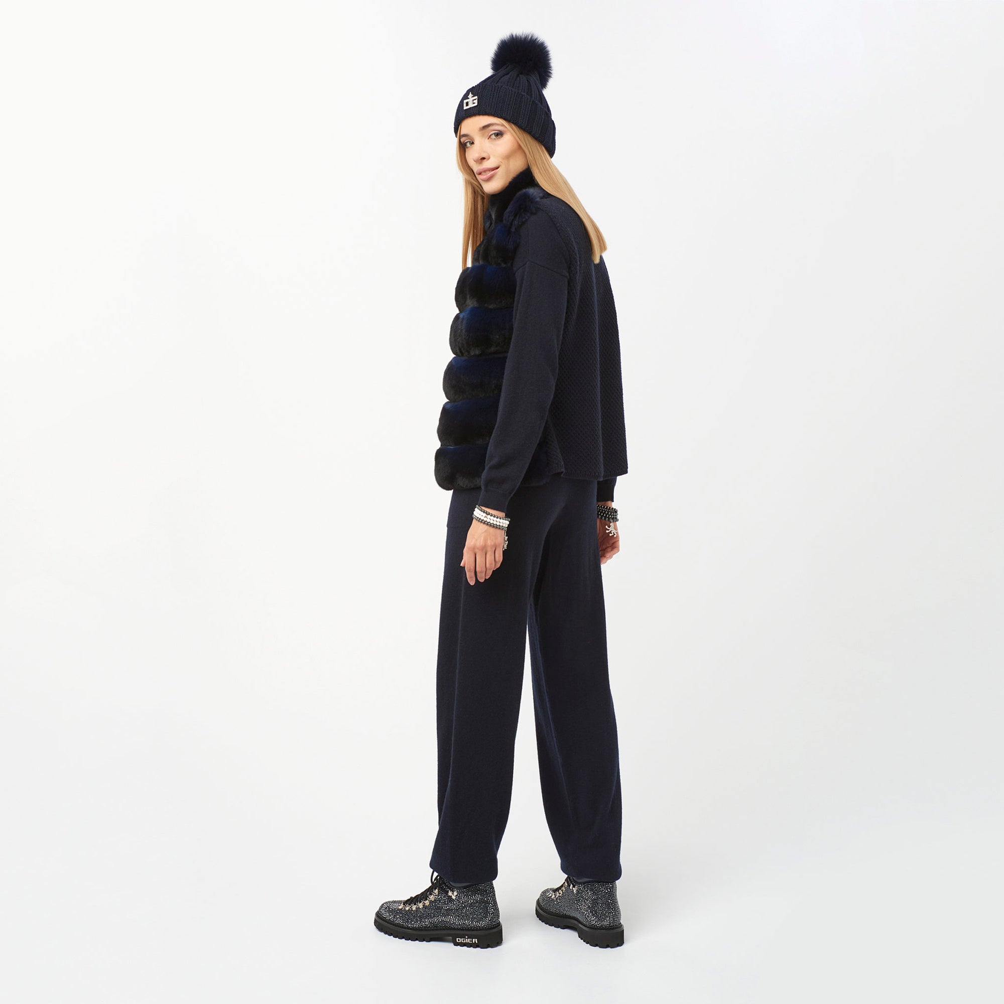 Chinchilla vest trimmed in cashmere featuring a high collar and double zipper detail. As shown with the Interalpen cashmere jumpsuit and Swarovski Crystal Partenkirchen boots.