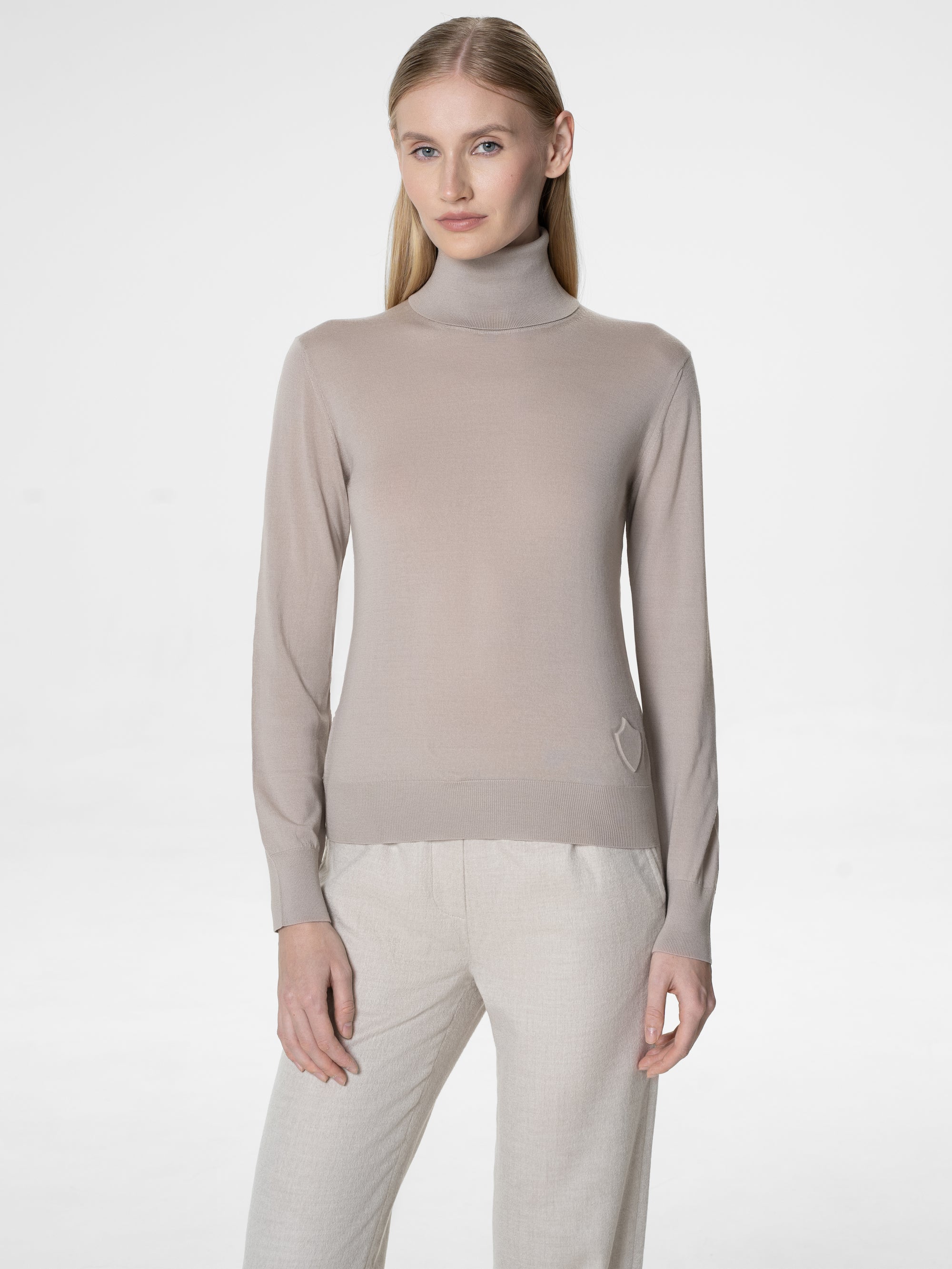 Knitted from ultra-fine 14.5-micron merino wool, the Grace turtleneck offers exceptional softness, lightness, and a smooth, feminine drape. Designed for layering or wearing on its own, it brings understated elegance to any moment. Pairs perfectly with the matching outerwear from the same collection for a refined, cohesive look.