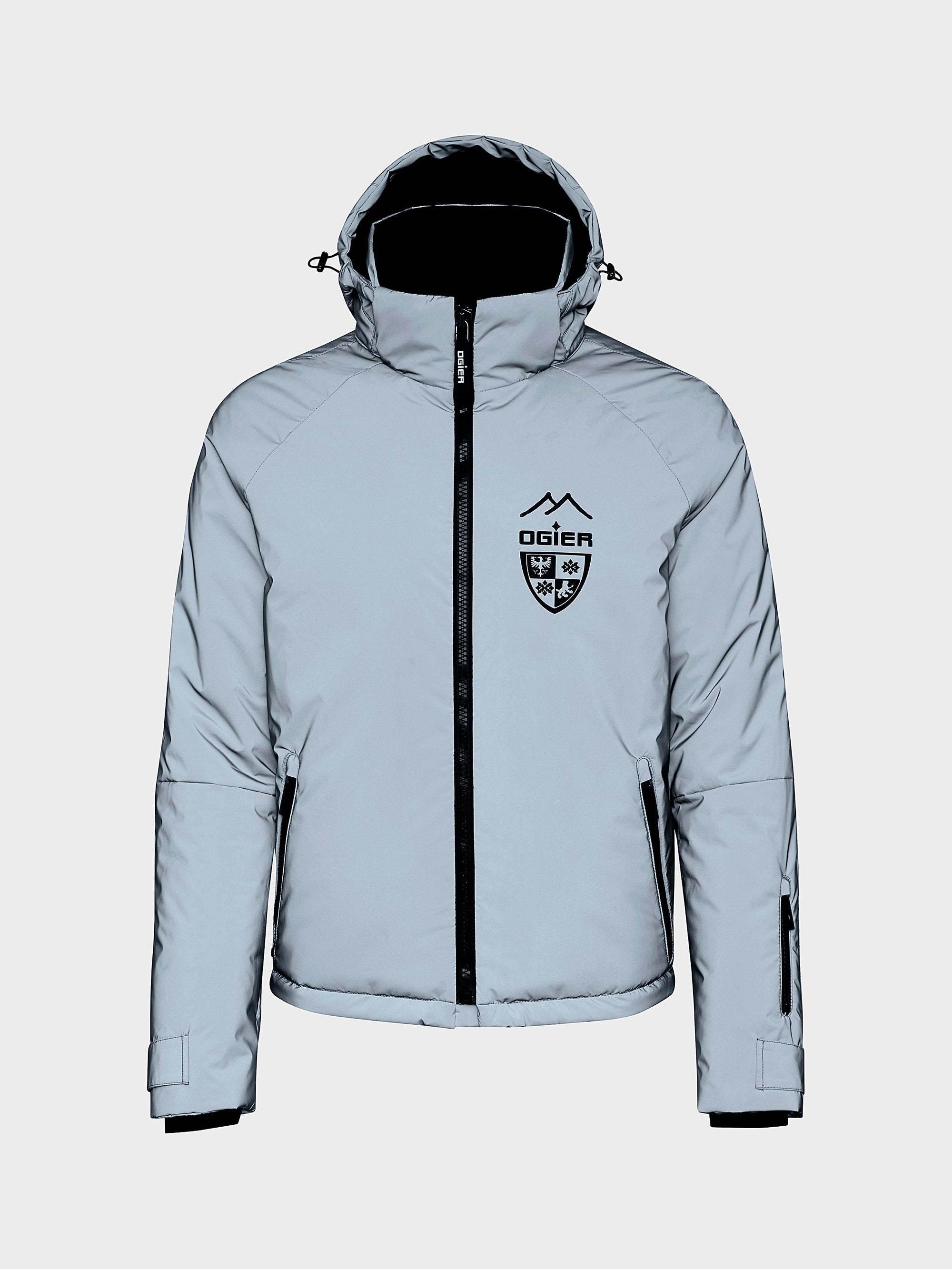 A sleek men’s jacket crafted from reflective, waterproof nylon, combining style and functionality. Padded for enhanced comfort, it boasts a matte black finish that underscores its sporty sophistication. The reflective fabric reacts dynamically to light, creating a subtle shimmer for a distinctive, modern edge.