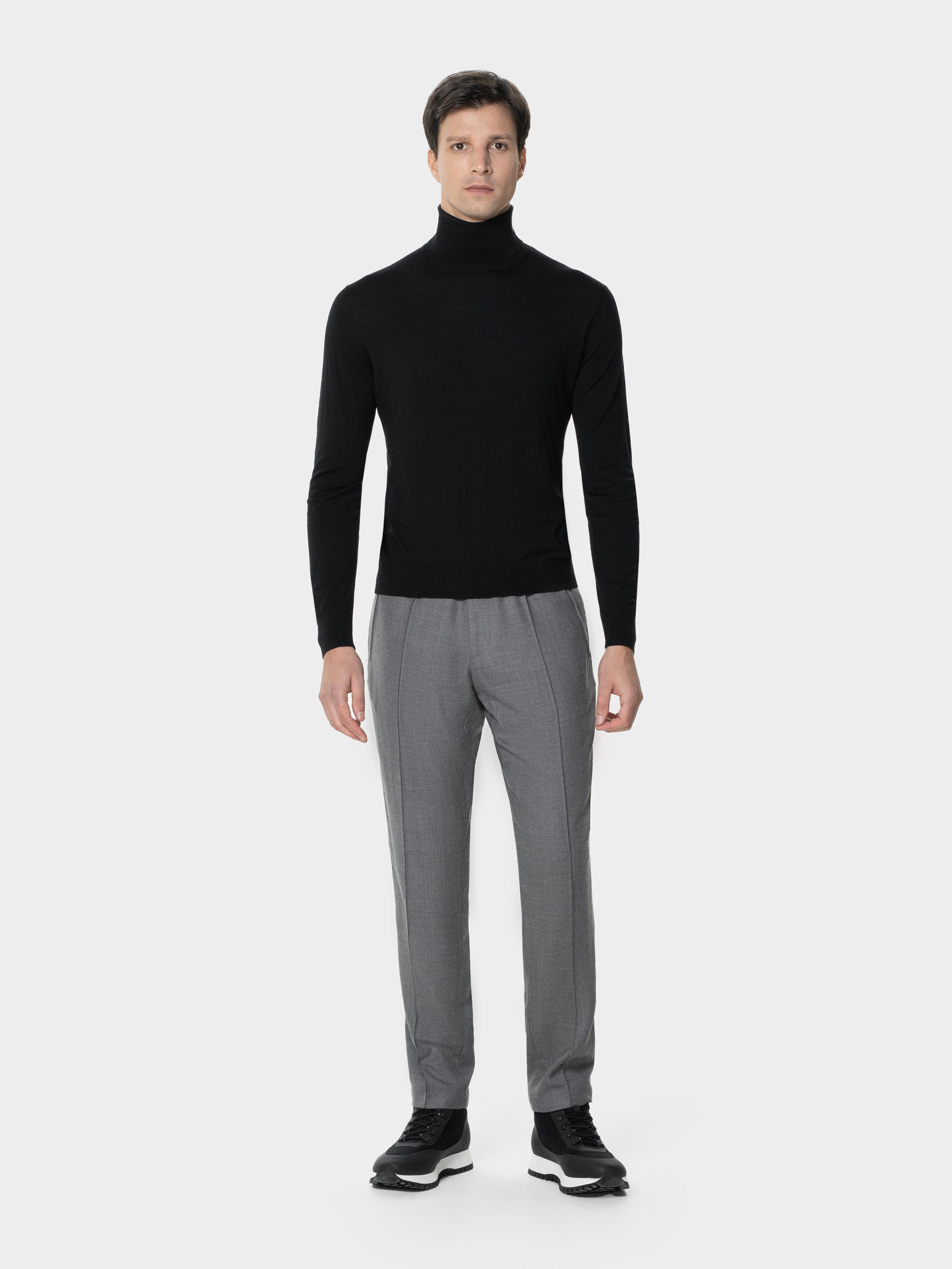 The refined blend of noble fibers by Ogier lends a sumptuous finish to this super lightweight turtleneck sweater crafted from fine New Zealand merino fabric of 14.5 micron. This exceptional fabric strikes the perfect balance between warmth, breathability and durability. A timeless essential for a sophisticated wardrobe, this turtleneck elegantly enhances the silhouette.