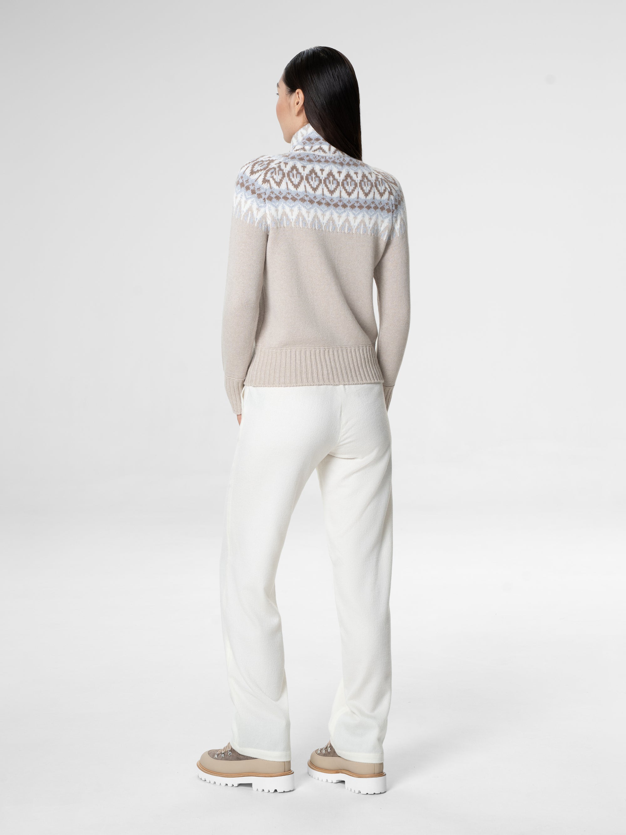 The Vrony cashmere zip turtleneck Sweater, exceptionally soft and versatile, features refined winter motifs that evoke warmth and coziness. Crafted from the finest cashmere, it’s a timeless essential for effortless elegance and comfort throughout the season.